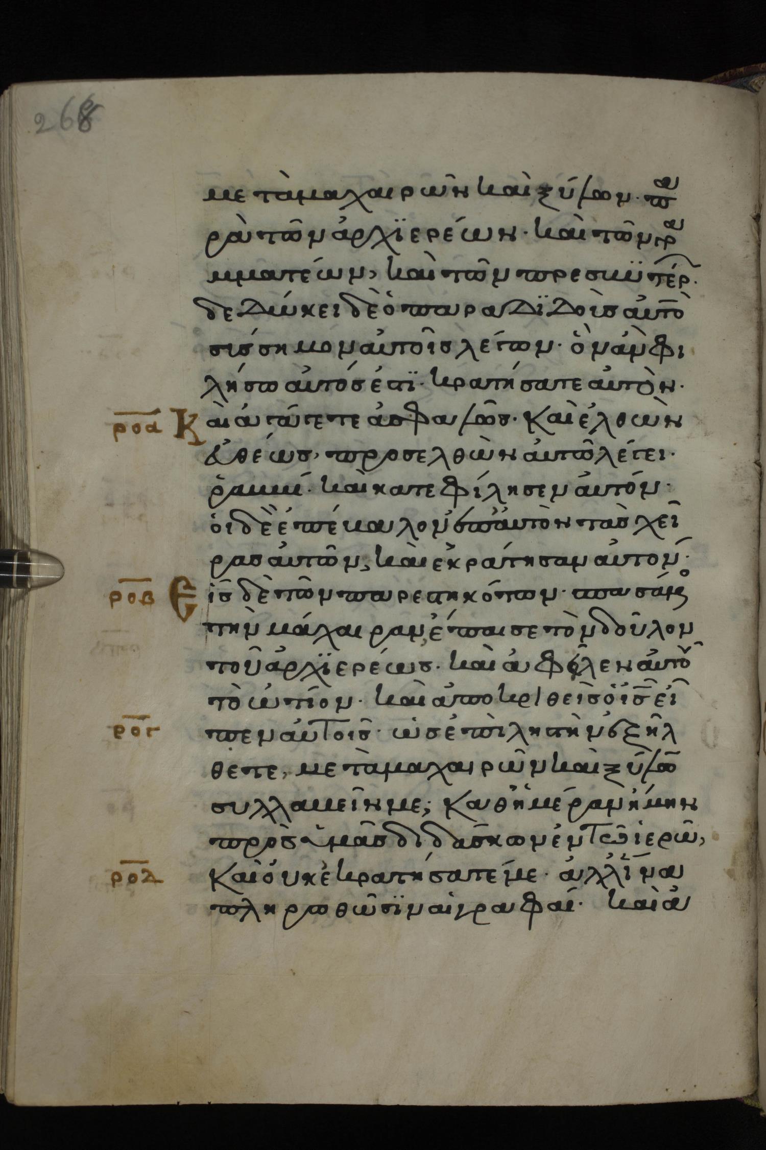 Twelfth century minuscule of the Gospels on parchment; 285 leaves, 1 column, 21-23 lines per column. Images were taken at the National Library of Greece in Athens.