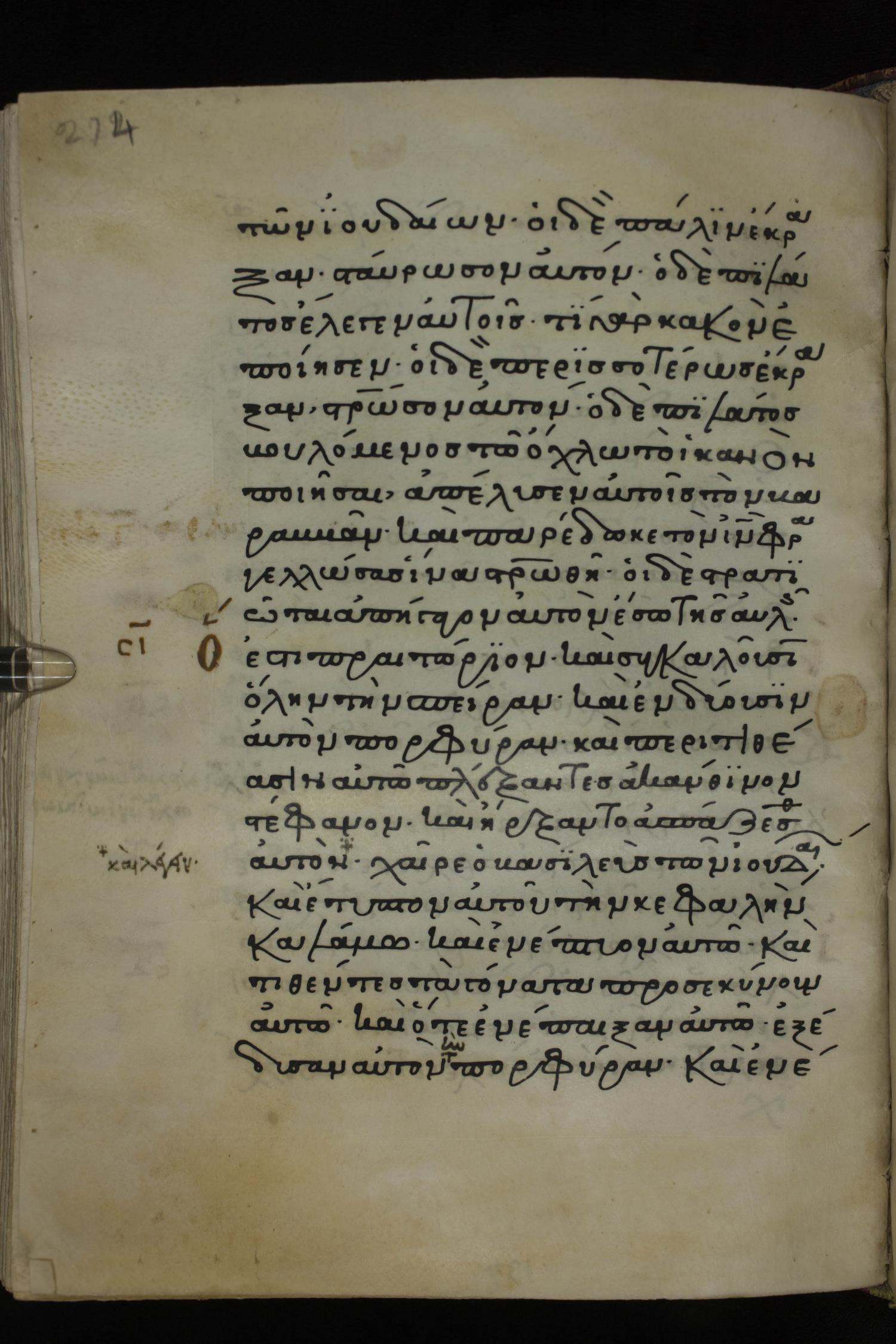 Twelfth century minuscule of the Gospels on parchment; 285 leaves, 1 column, 21-23 lines per column. Images were taken at the National Library of Greece in Athens.