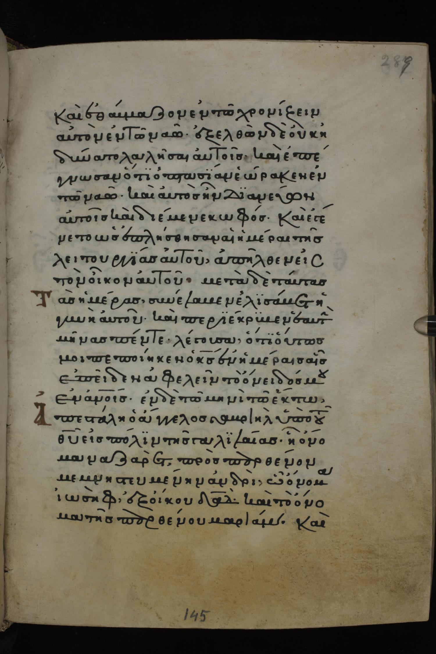 Twelfth century minuscule of the Gospels on parchment; 285 leaves, 1 column, 21-23 lines per column. Images were taken at the National Library of Greece in Athens.