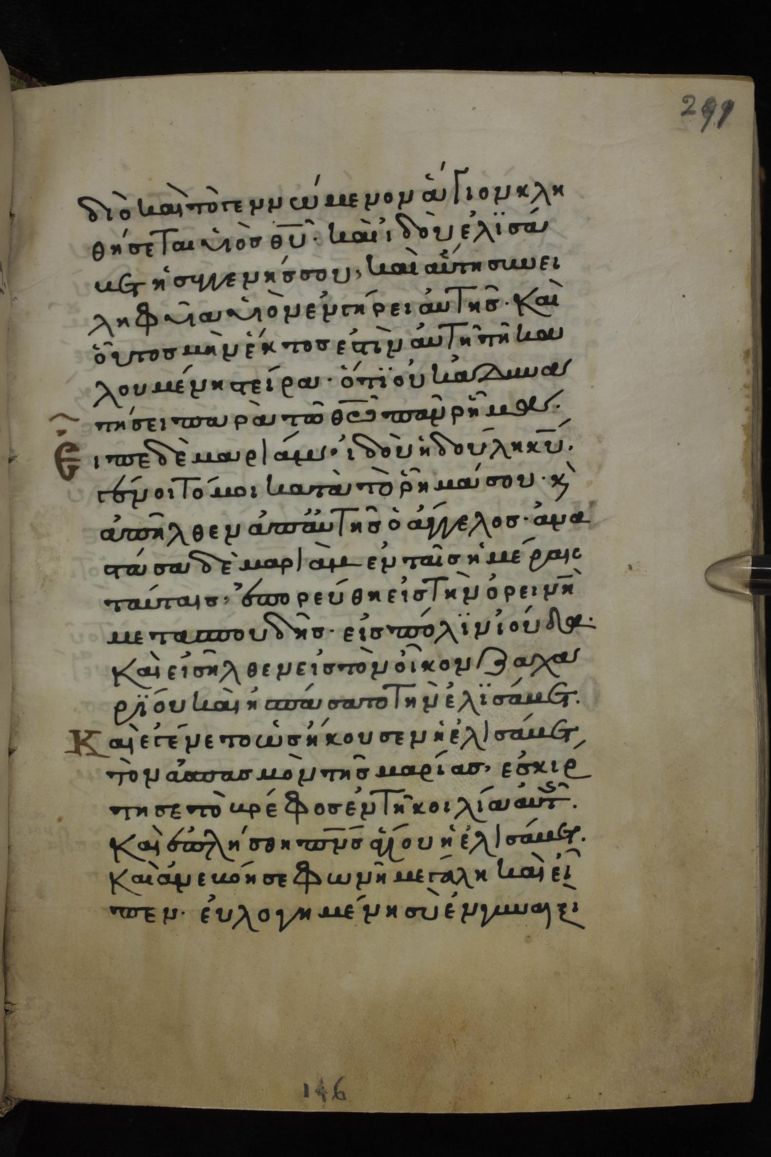 Twelfth century minuscule of the Gospels on parchment; 285 leaves, 1 column, 21-23 lines per column. Images were taken at the National Library of Greece in Athens.