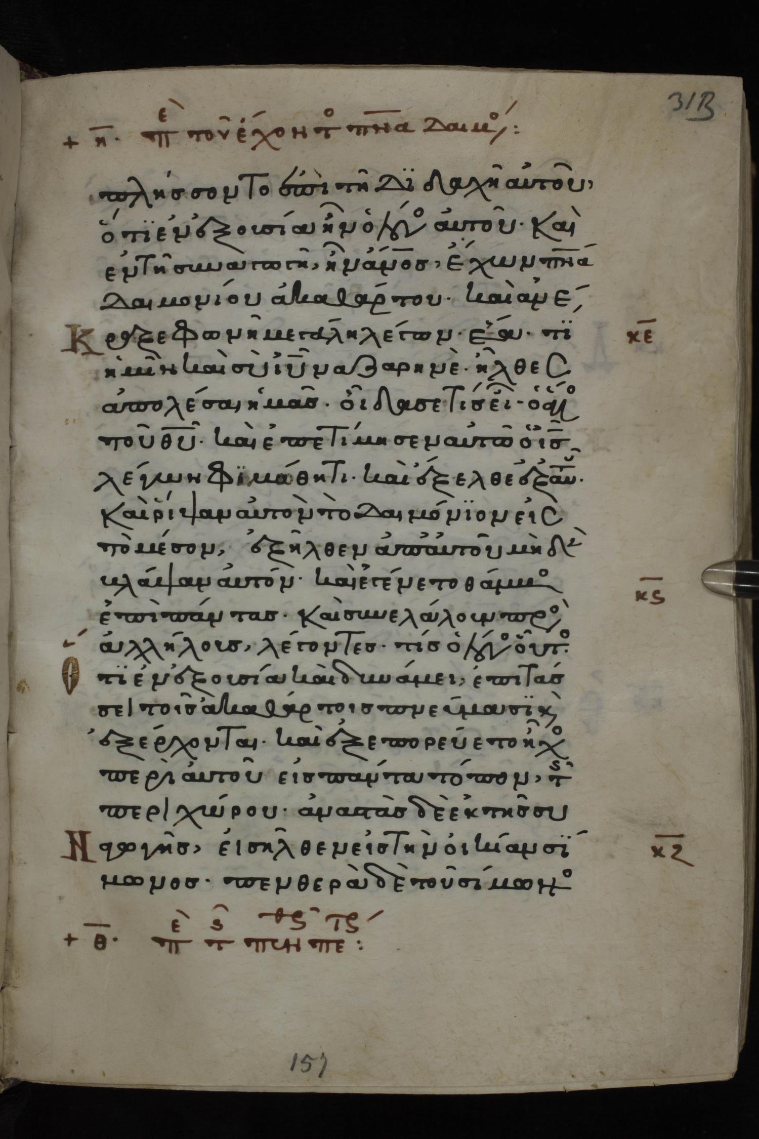 Twelfth century minuscule of the Gospels on parchment; 285 leaves, 1 column, 21-23 lines per column. Images were taken at the National Library of Greece in Athens.