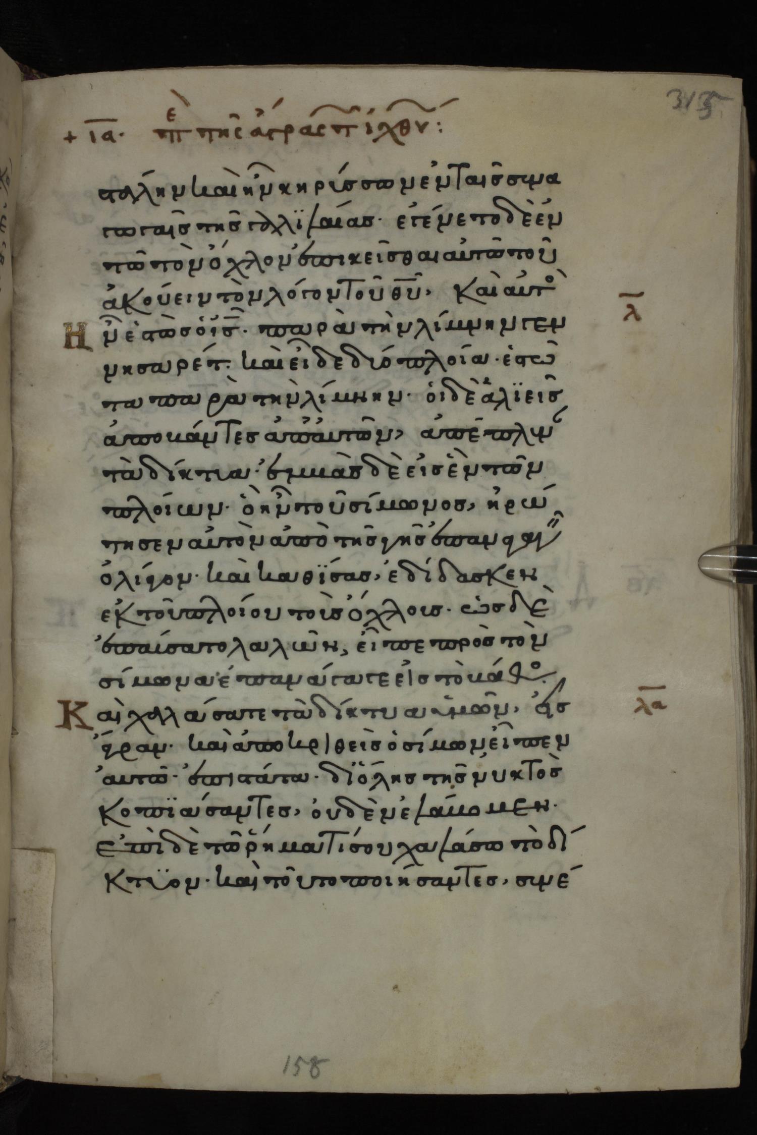 Twelfth century minuscule of the Gospels on parchment; 285 leaves, 1 column, 21-23 lines per column. Images were taken at the National Library of Greece in Athens.