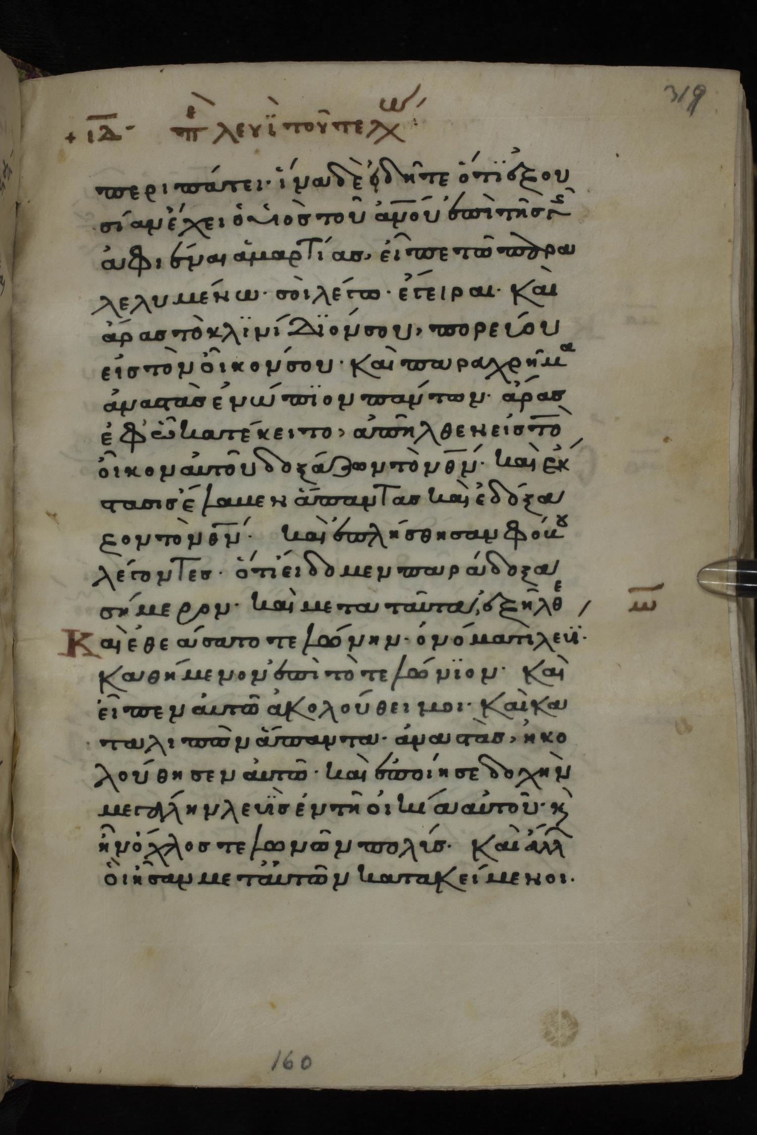 Twelfth century minuscule of the Gospels on parchment; 285 leaves, 1 column, 21-23 lines per column. Images were taken at the National Library of Greece in Athens.