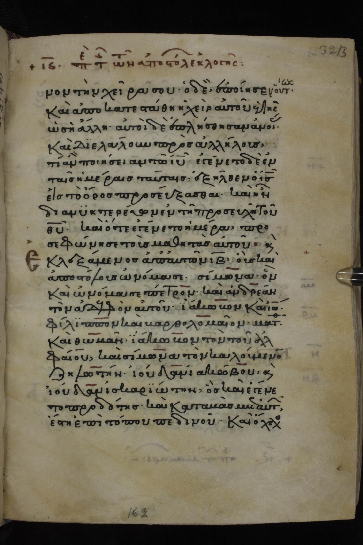 Twelfth century minuscule of the Gospels on parchment; 285 leaves, 1 column, 21-23 lines per column. Images were taken at the National Library of Greece in Athens.