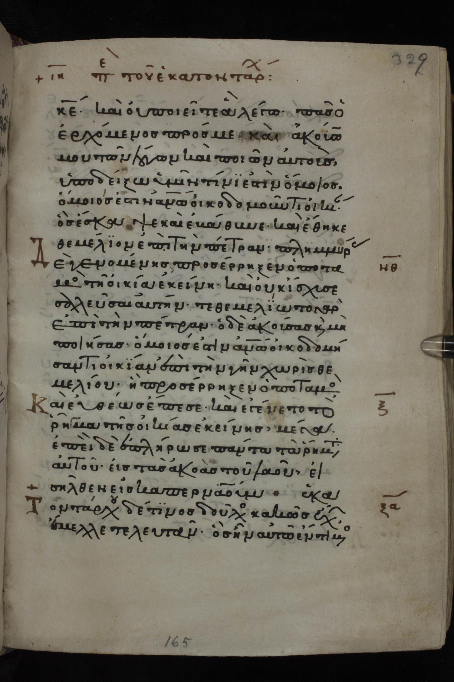Twelfth century minuscule of the Gospels on parchment; 285 leaves, 1 column, 21-23 lines per column. Images were taken at the National Library of Greece in Athens.