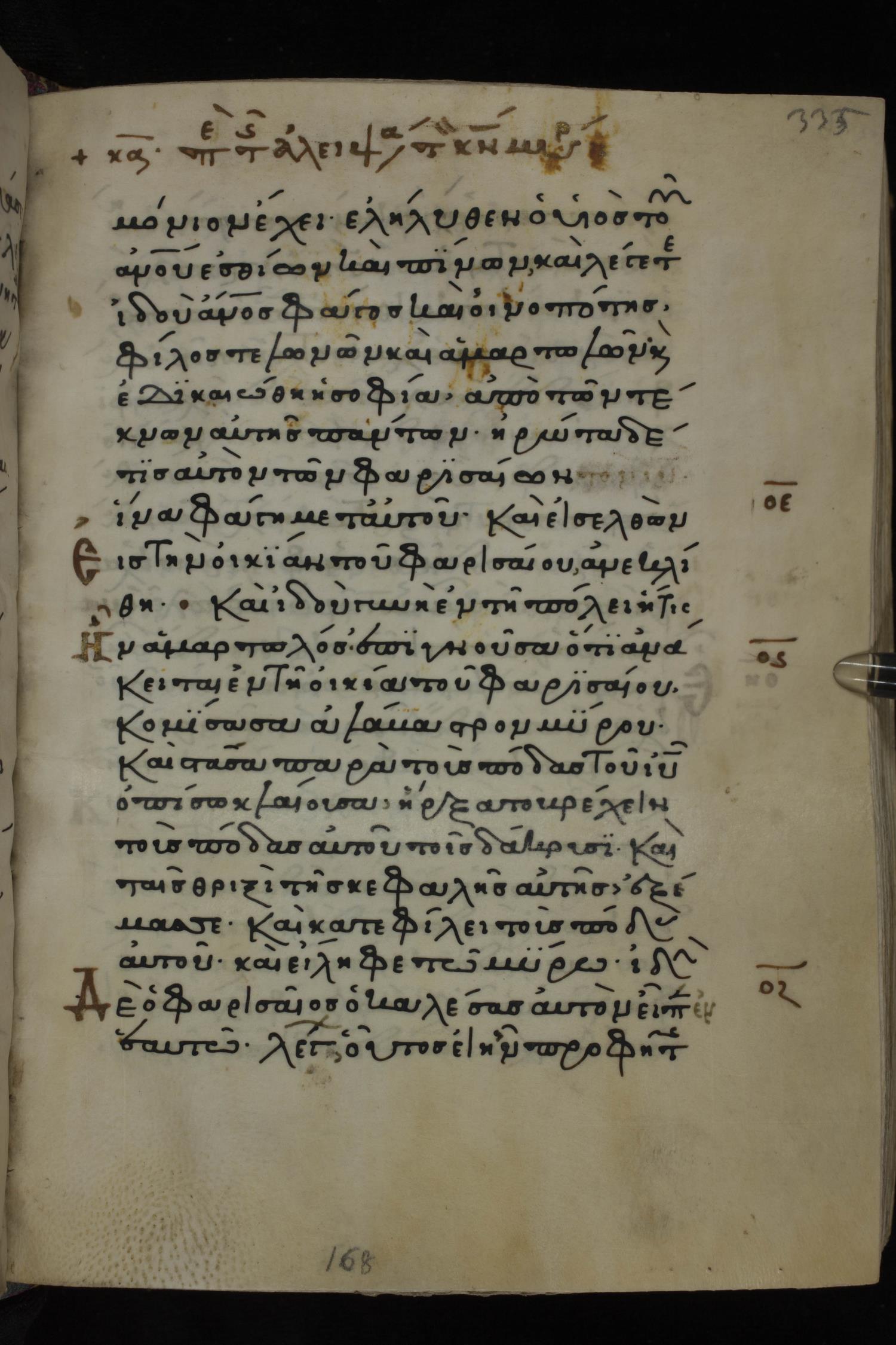 Twelfth century minuscule of the Gospels on parchment; 285 leaves, 1 column, 21-23 lines per column. Images were taken at the National Library of Greece in Athens.
