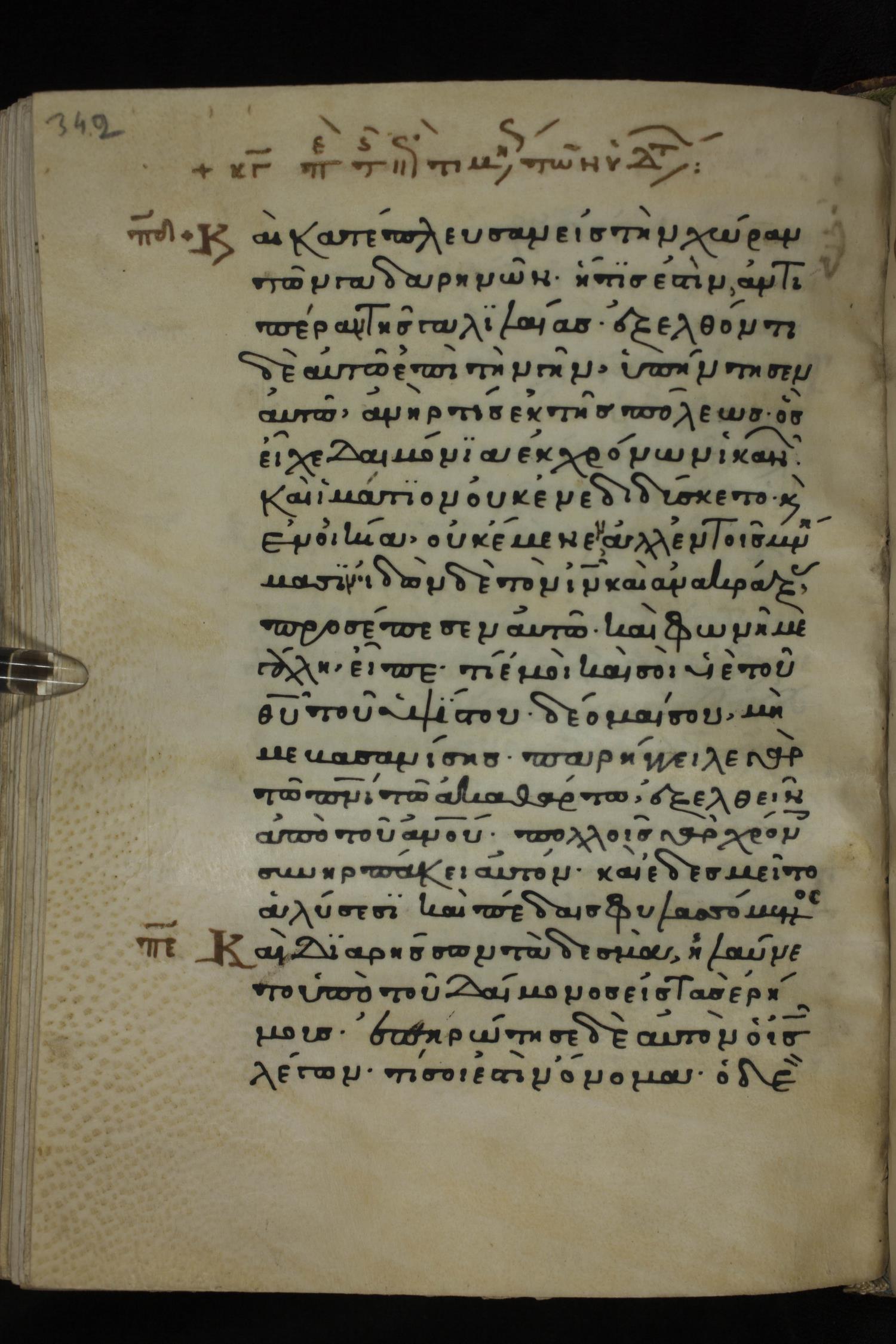 Twelfth century minuscule of the Gospels on parchment; 285 leaves, 1 column, 21-23 lines per column. Images were taken at the National Library of Greece in Athens.