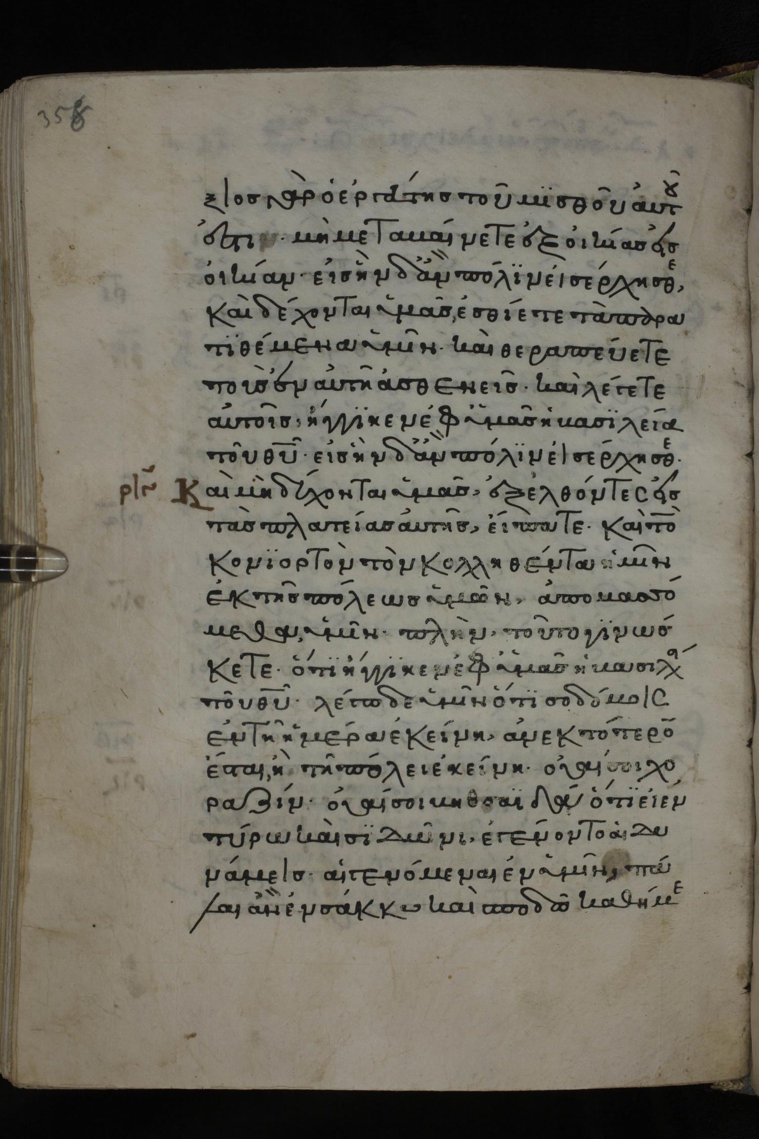 Twelfth century minuscule of the Gospels on parchment; 285 leaves, 1 column, 21-23 lines per column. Images were taken at the National Library of Greece in Athens.