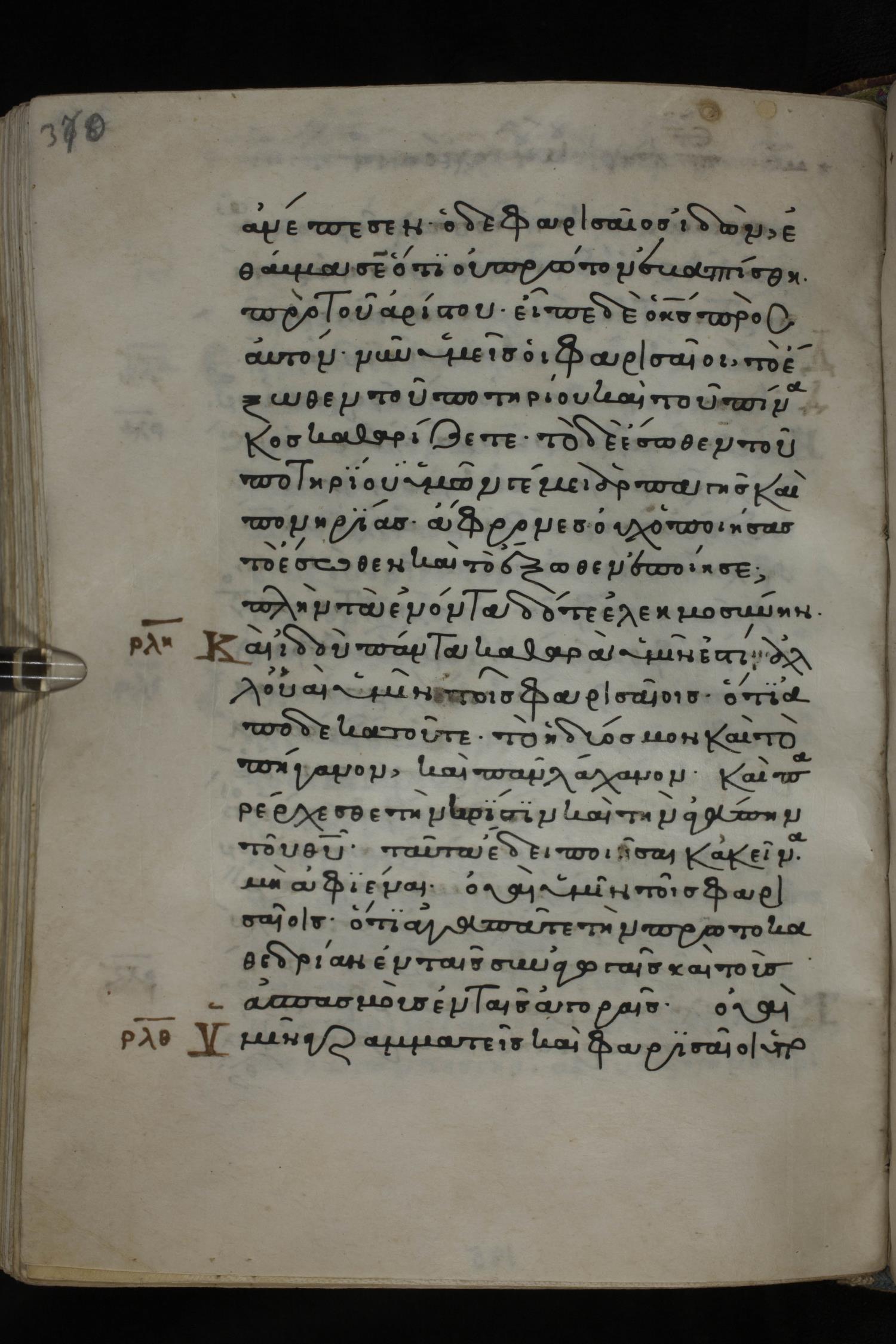 Twelfth century minuscule of the Gospels on parchment; 285 leaves, 1 column, 21-23 lines per column. Images were taken at the National Library of Greece in Athens.