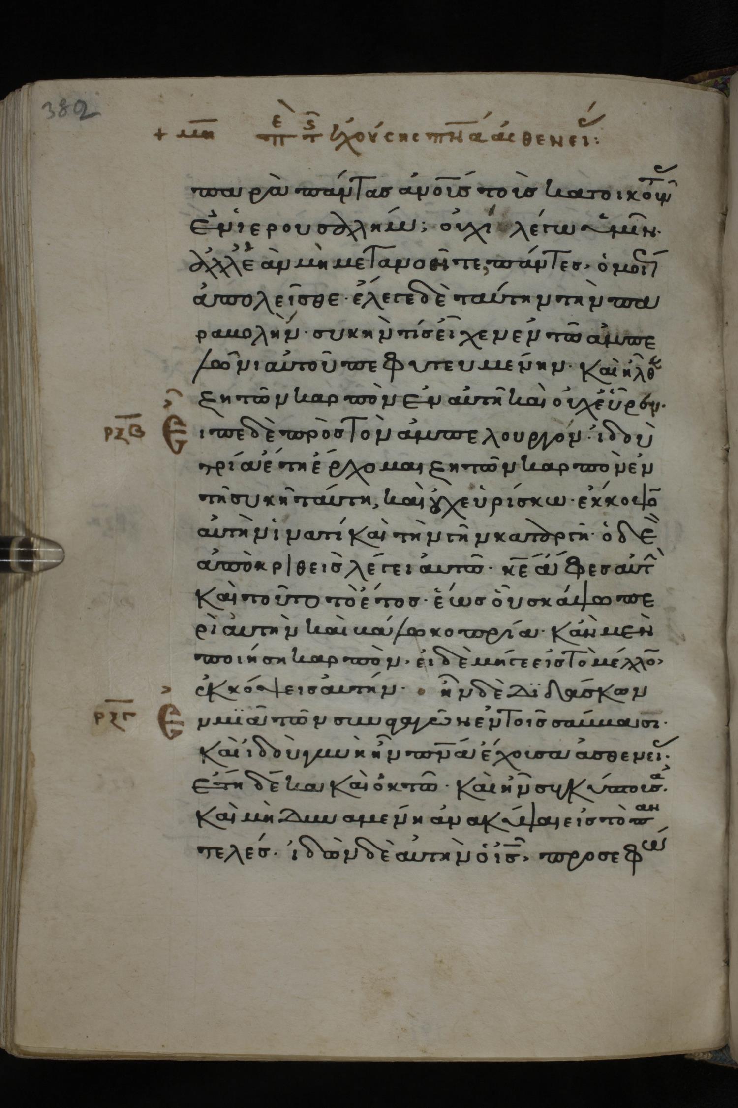 Twelfth century minuscule of the Gospels on parchment; 285 leaves, 1 column, 21-23 lines per column. Images were taken at the National Library of Greece in Athens.