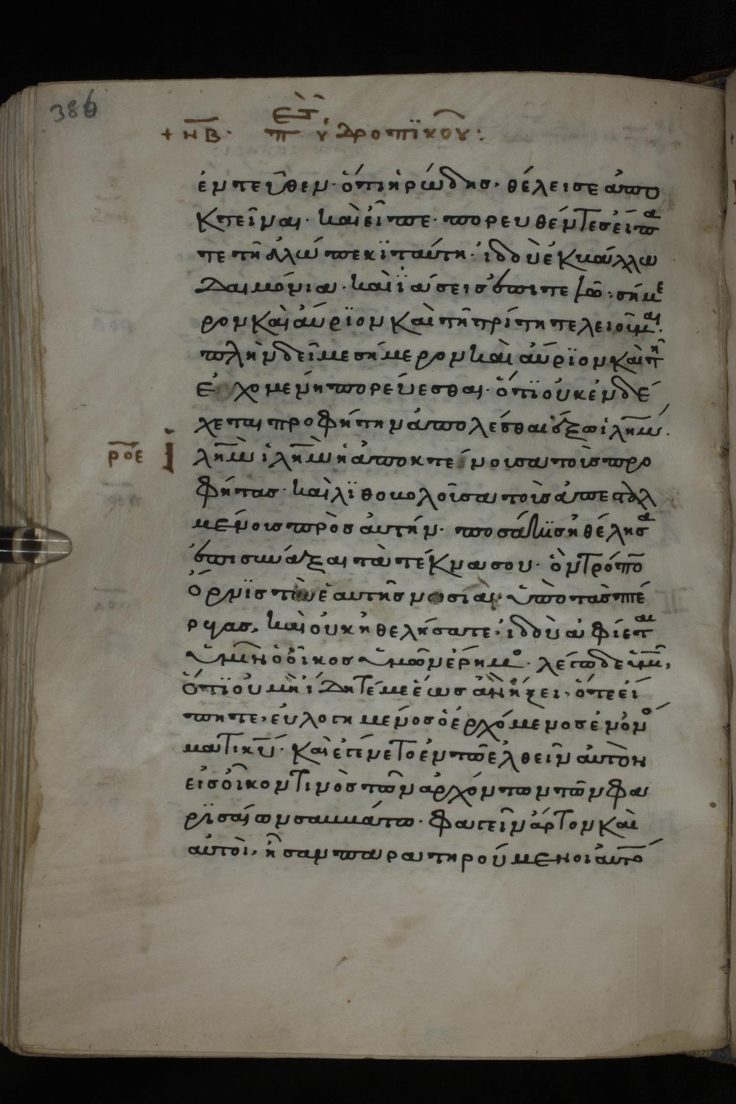 Twelfth century minuscule of the Gospels on parchment; 285 leaves, 1 column, 21-23 lines per column. Images were taken at the National Library of Greece in Athens.