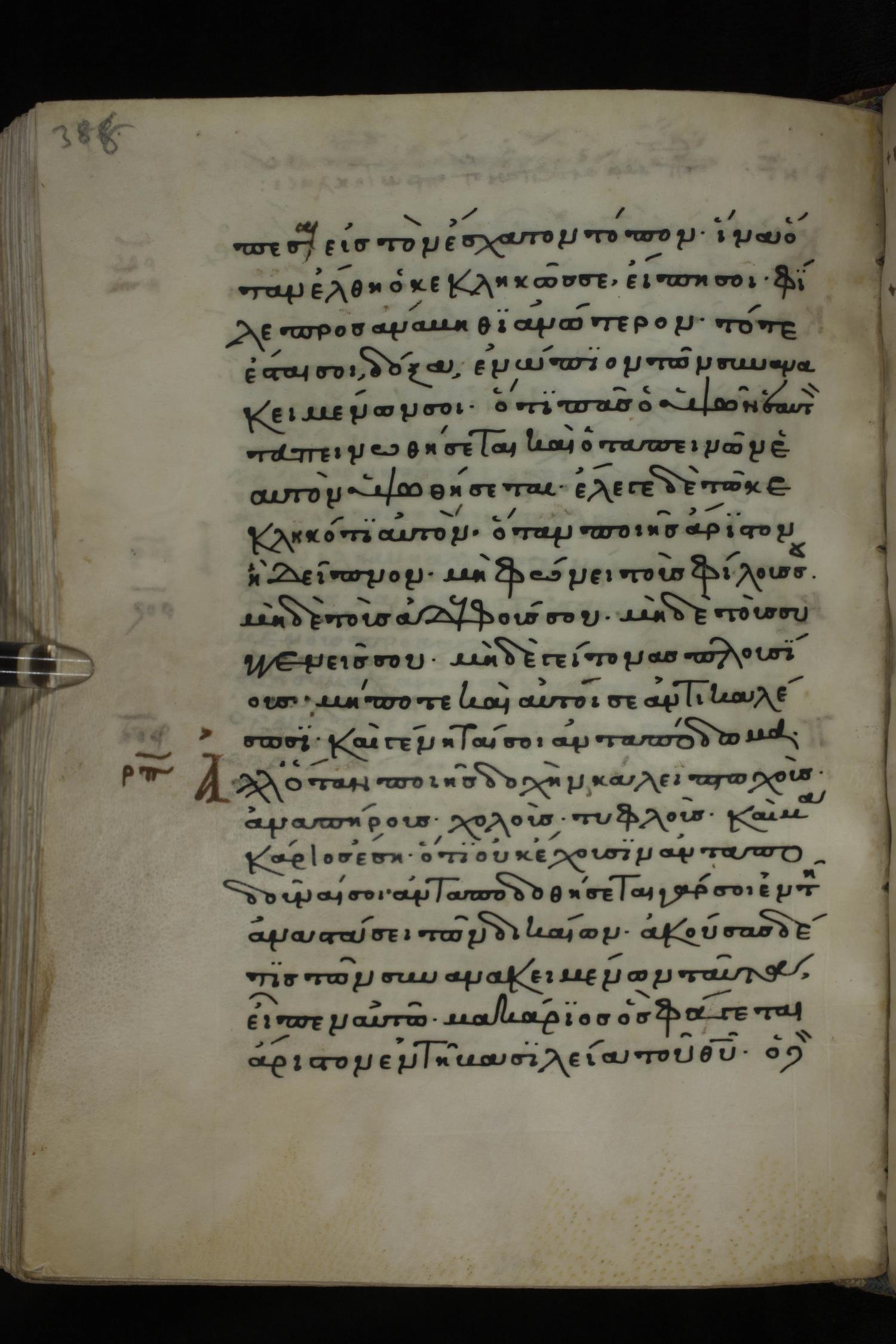 Twelfth century minuscule of the Gospels on parchment; 285 leaves, 1 column, 21-23 lines per column. Images were taken at the National Library of Greece in Athens.