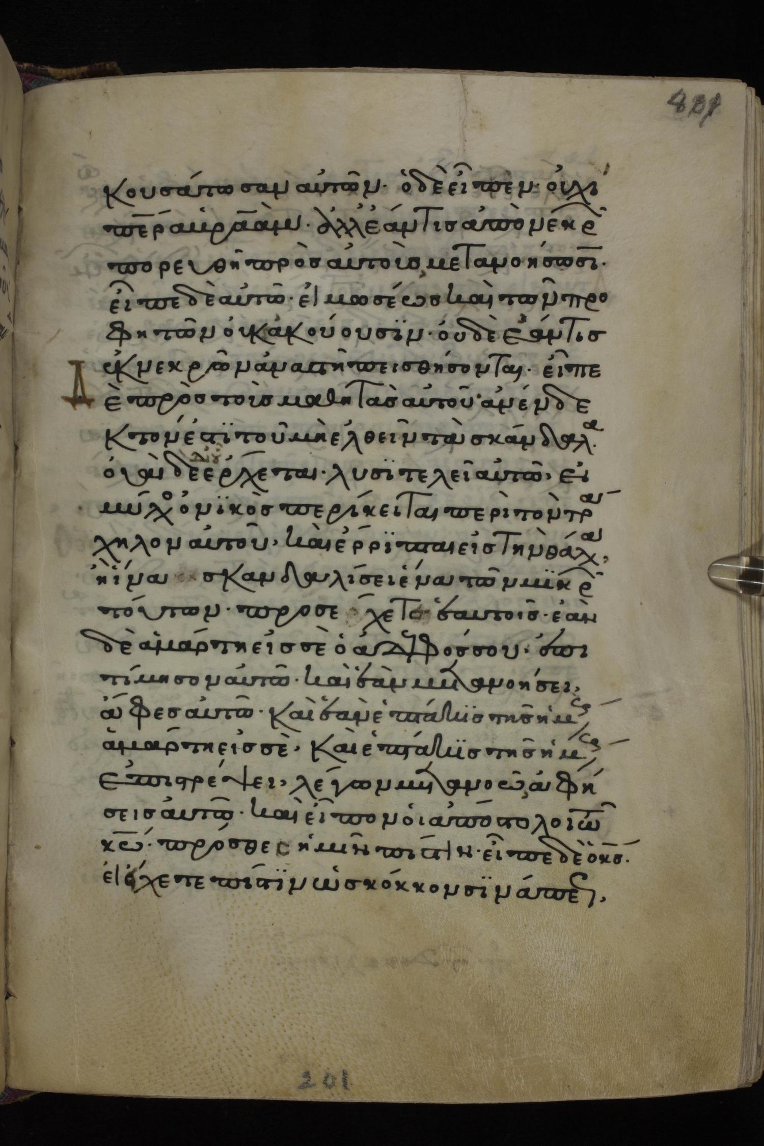 Twelfth century minuscule of the Gospels on parchment; 285 leaves, 1 column, 21-23 lines per column. Images were taken at the National Library of Greece in Athens.