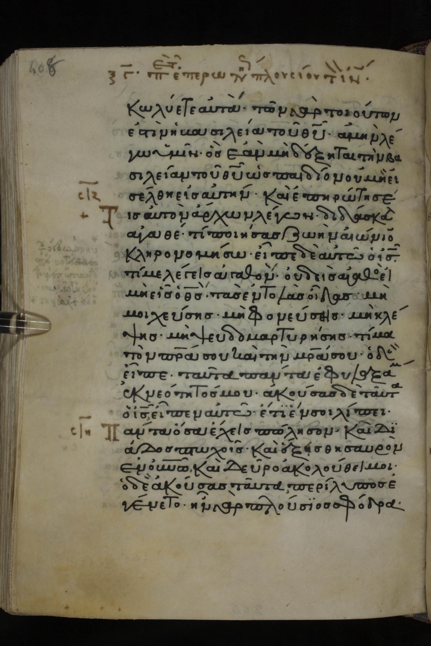 Twelfth century minuscule of the Gospels on parchment; 285 leaves, 1 column, 21-23 lines per column. Images were taken at the National Library of Greece in Athens.