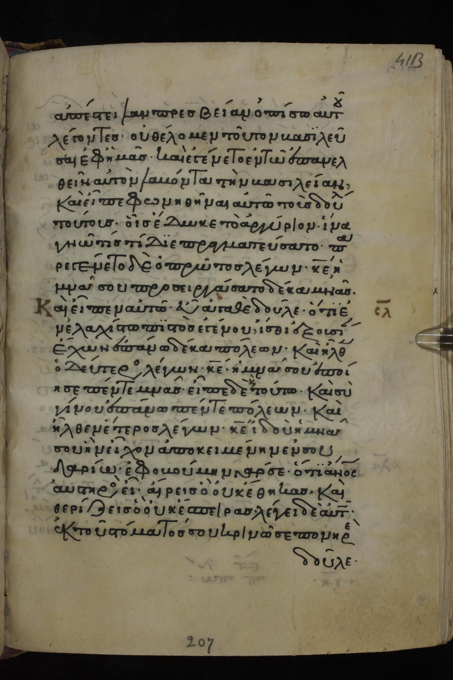 Twelfth century minuscule of the Gospels on parchment; 285 leaves, 1 column, 21-23 lines per column. Images were taken at the National Library of Greece in Athens.