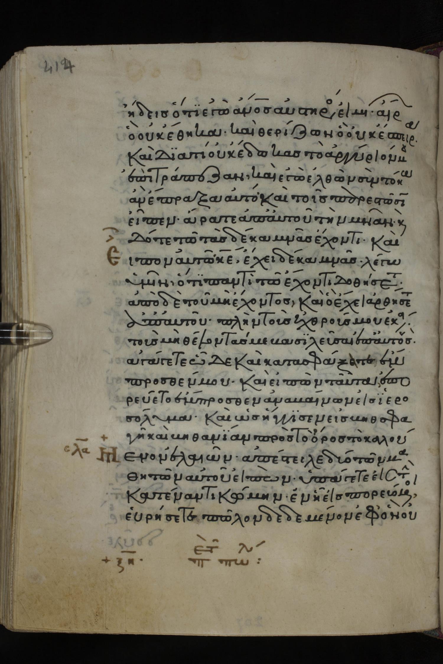 Twelfth century minuscule of the Gospels on parchment; 285 leaves, 1 column, 21-23 lines per column. Images were taken at the National Library of Greece in Athens.