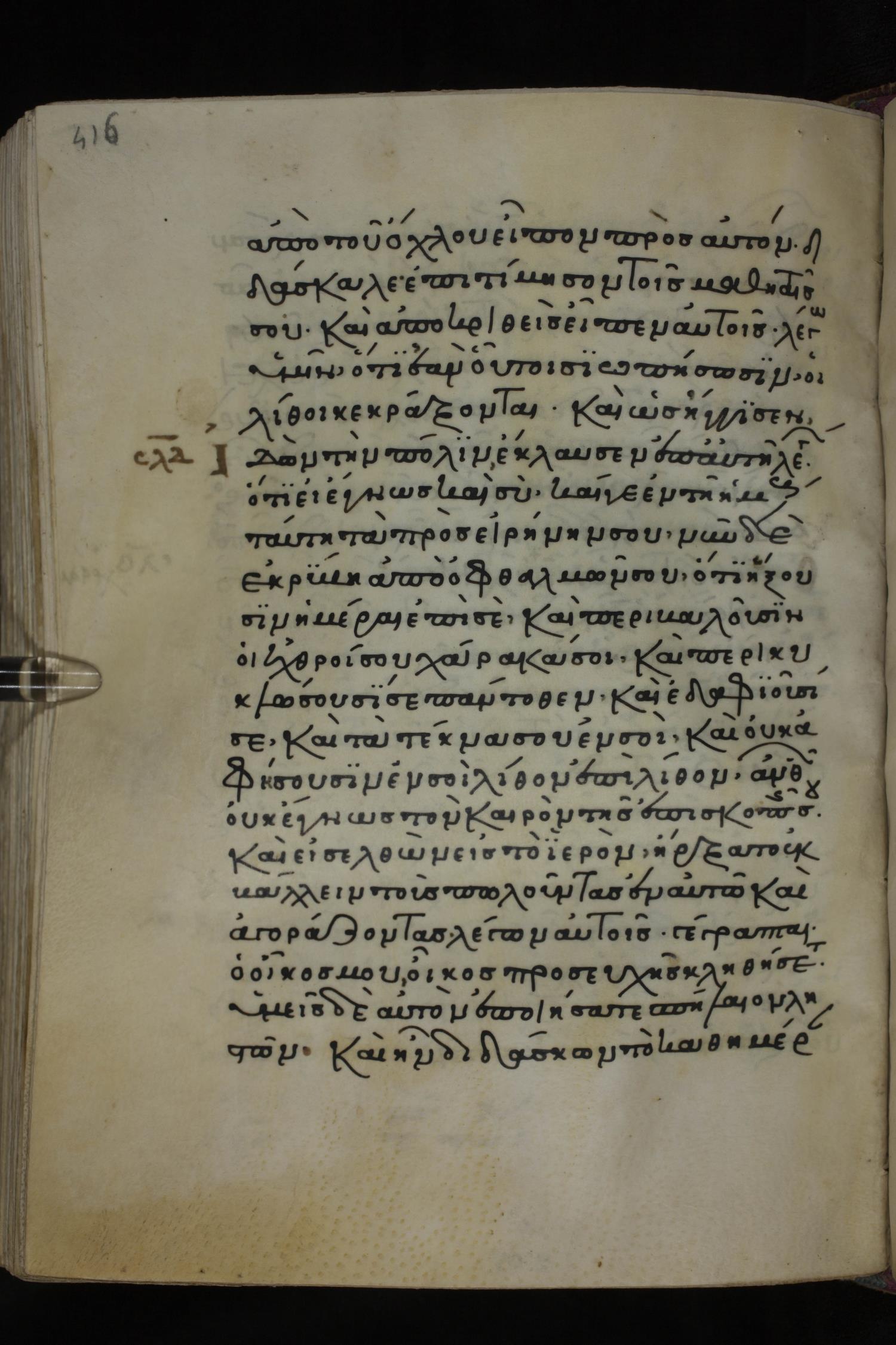 Twelfth century minuscule of the Gospels on parchment; 285 leaves, 1 column, 21-23 lines per column. Images were taken at the National Library of Greece in Athens.