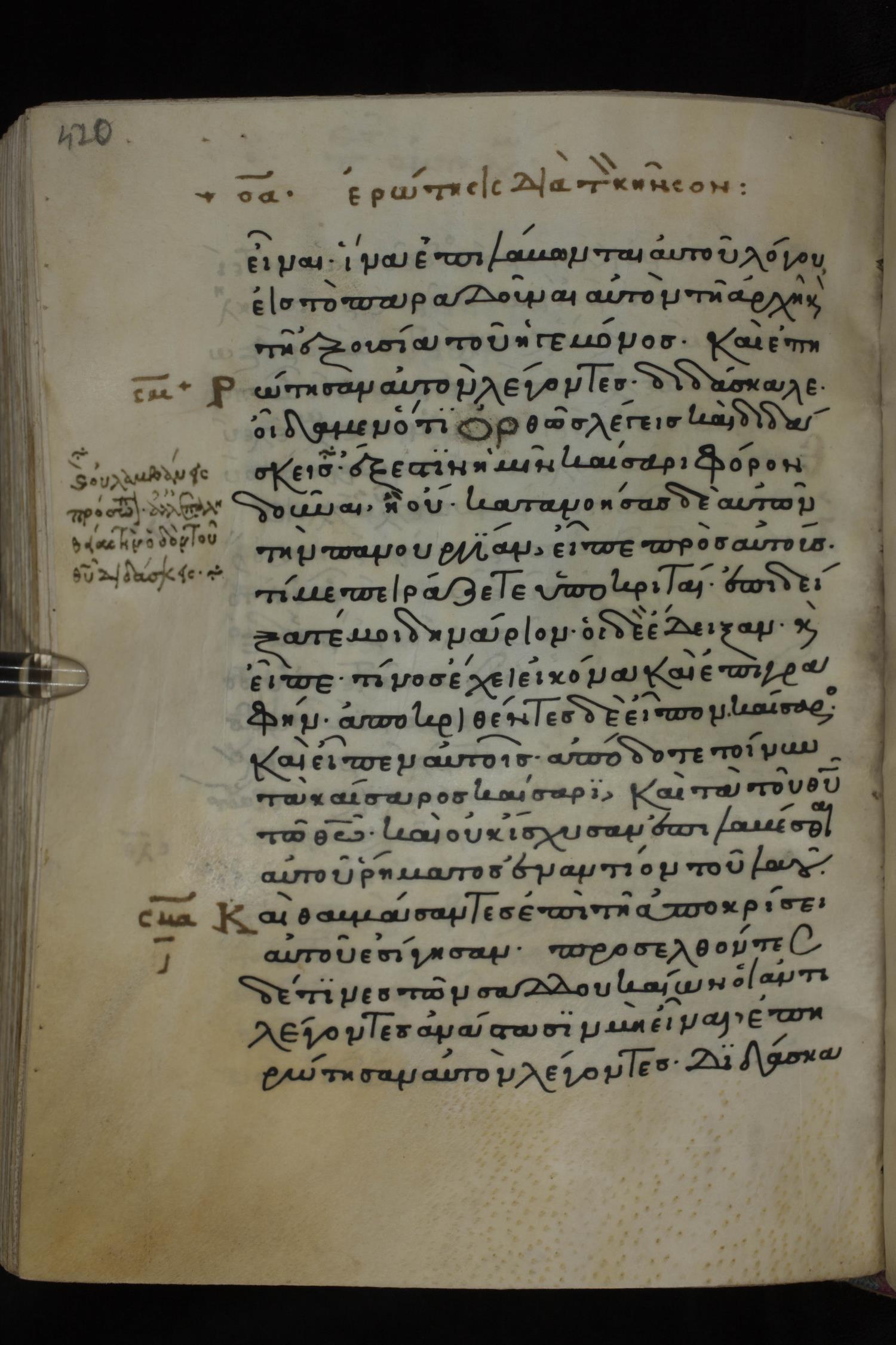 Twelfth century minuscule of the Gospels on parchment; 285 leaves, 1 column, 21-23 lines per column. Images were taken at the National Library of Greece in Athens.