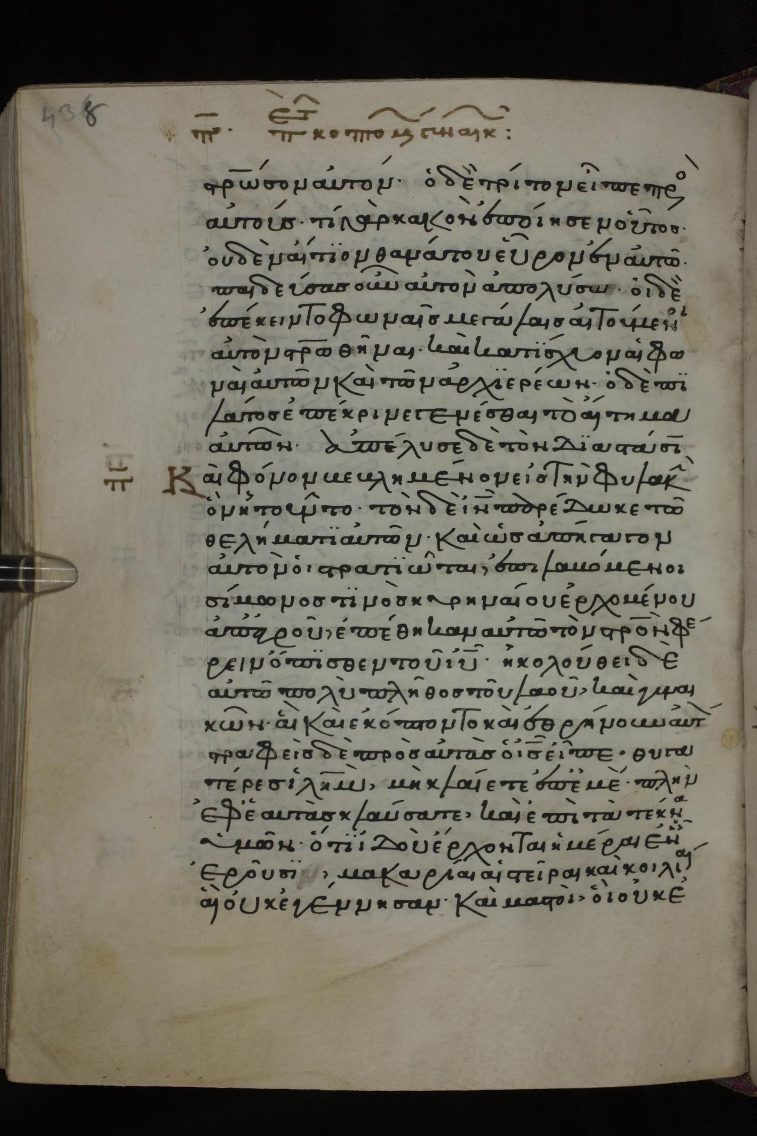 Twelfth century minuscule of the Gospels on parchment; 285 leaves, 1 column, 21-23 lines per column. Images were taken at the National Library of Greece in Athens.