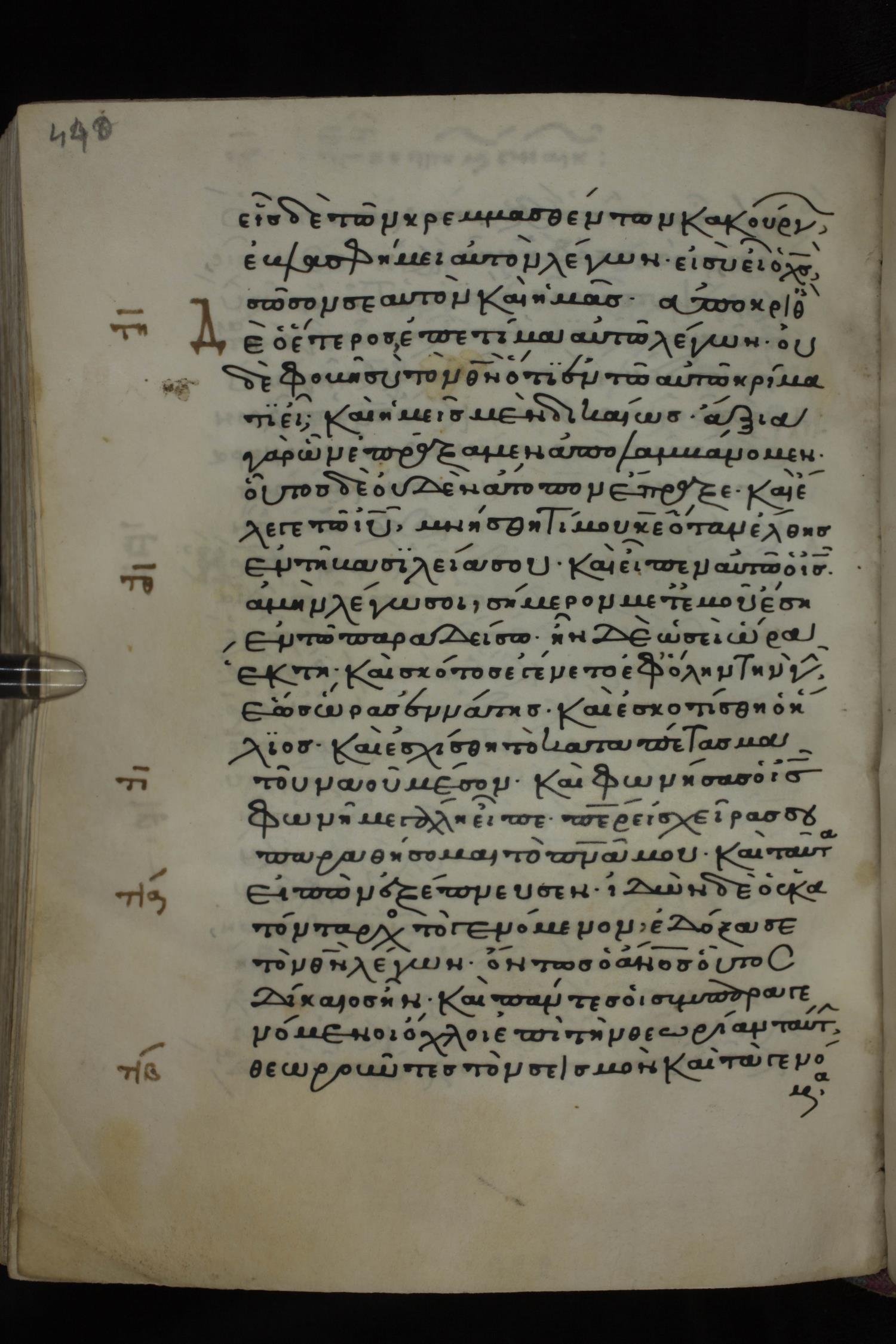 Twelfth century minuscule of the Gospels on parchment; 285 leaves, 1 column, 21-23 lines per column. Images were taken at the National Library of Greece in Athens.