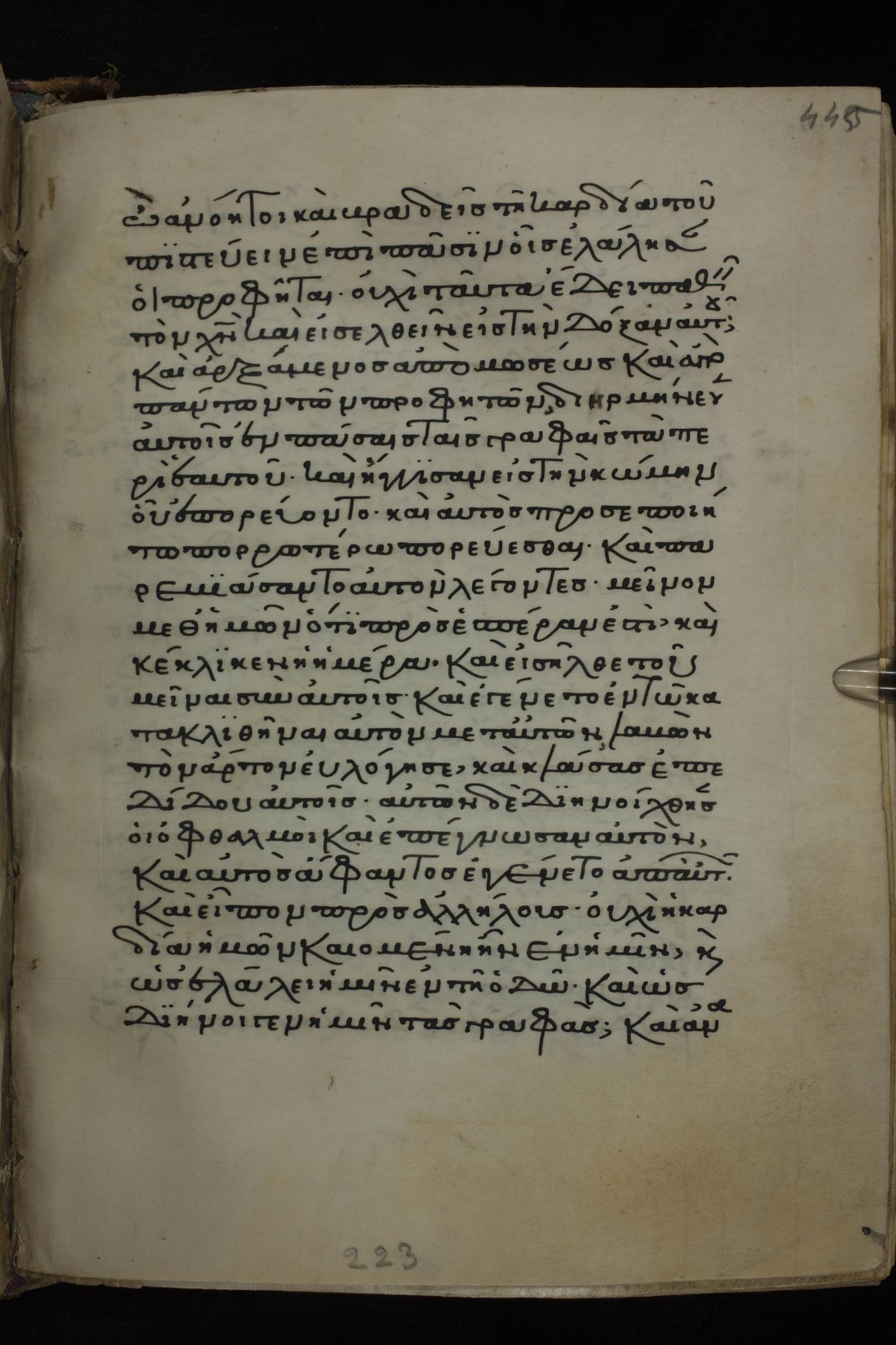 Twelfth century minuscule of the Gospels on parchment; 285 leaves, 1 column, 21-23 lines per column. Images were taken at the National Library of Greece in Athens.