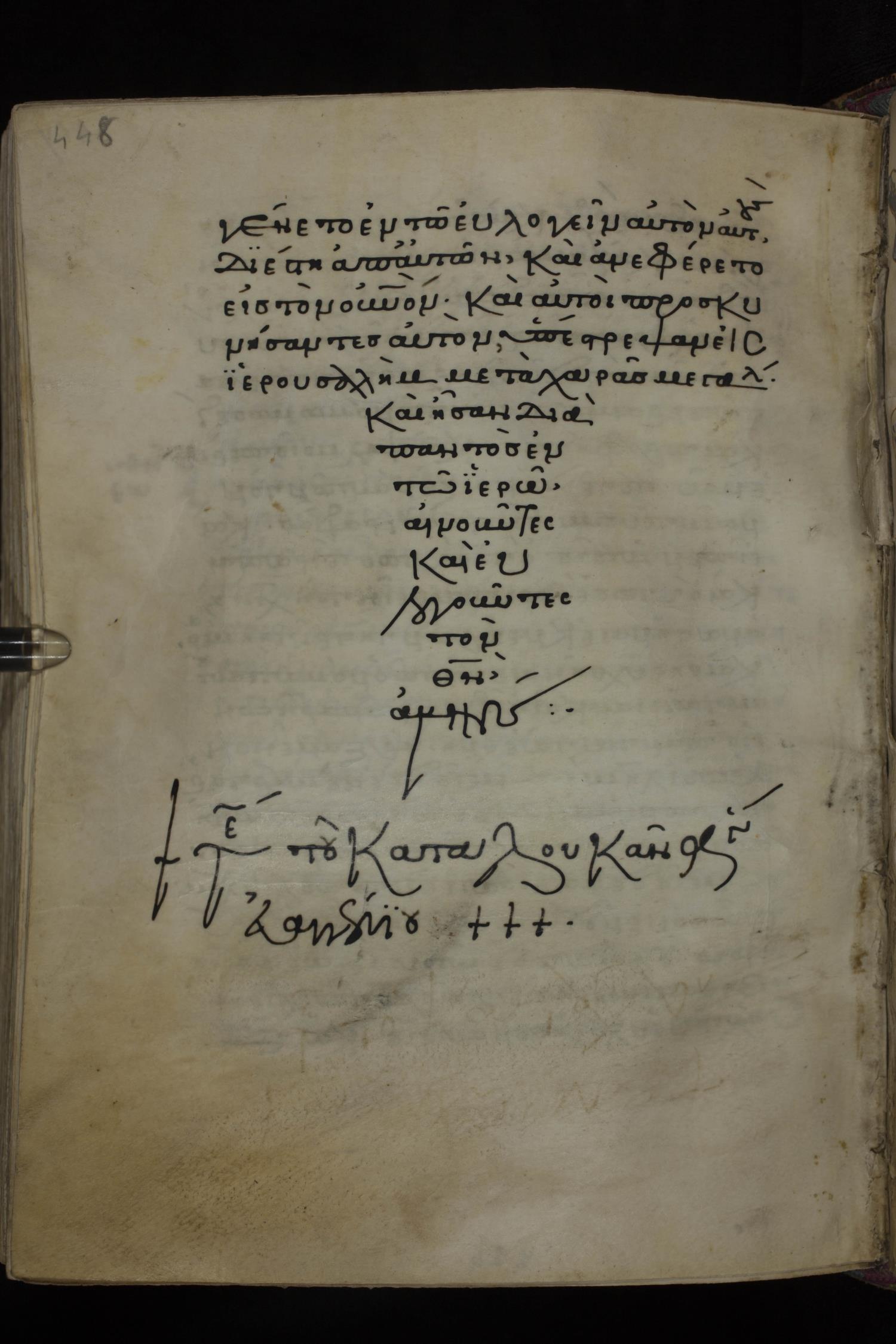 Twelfth century minuscule of the Gospels on parchment; 285 leaves, 1 column, 21-23 lines per column. Images were taken at the National Library of Greece in Athens.