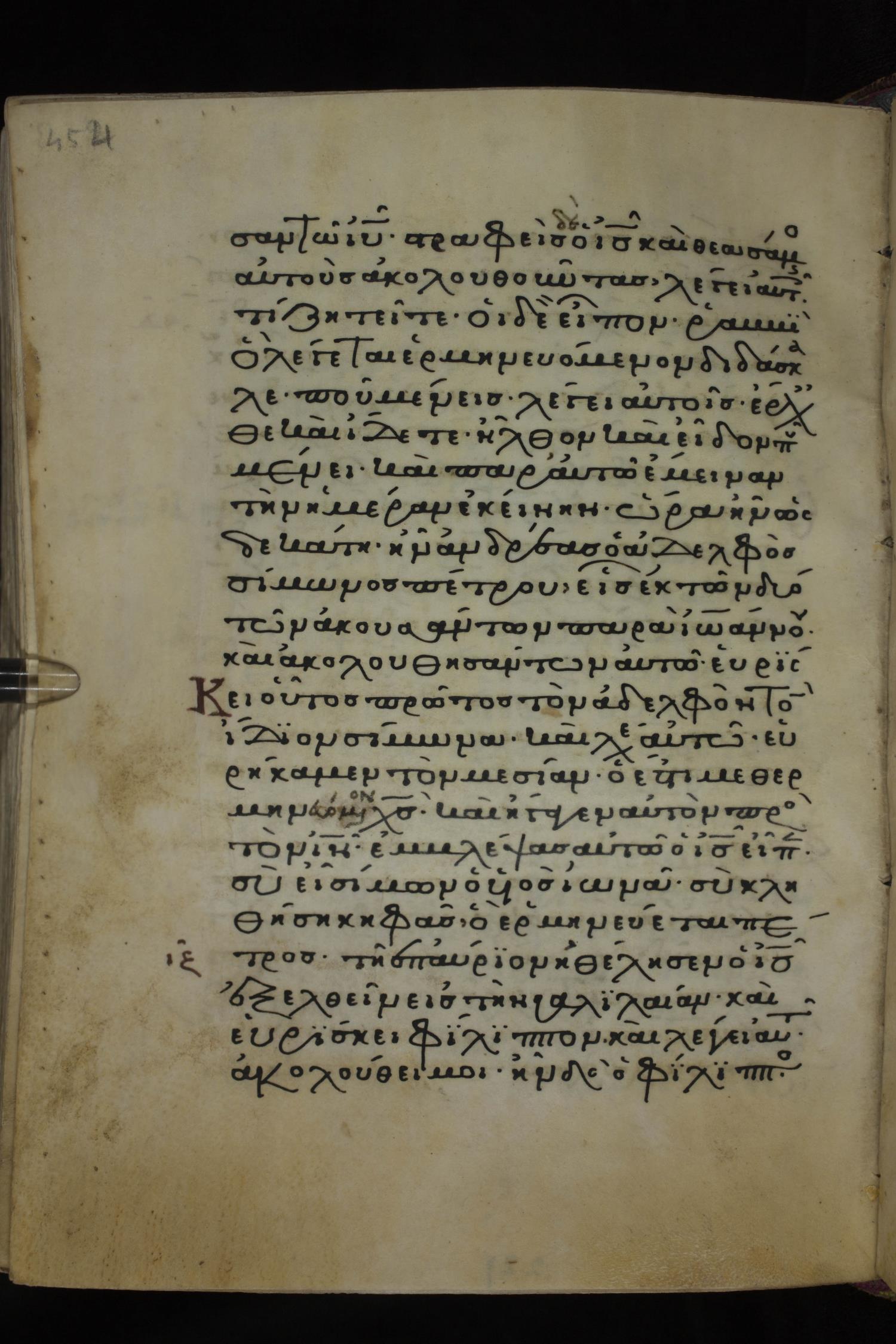 Twelfth century minuscule of the Gospels on parchment; 285 leaves, 1 column, 21-23 lines per column. Images were taken at the National Library of Greece in Athens.