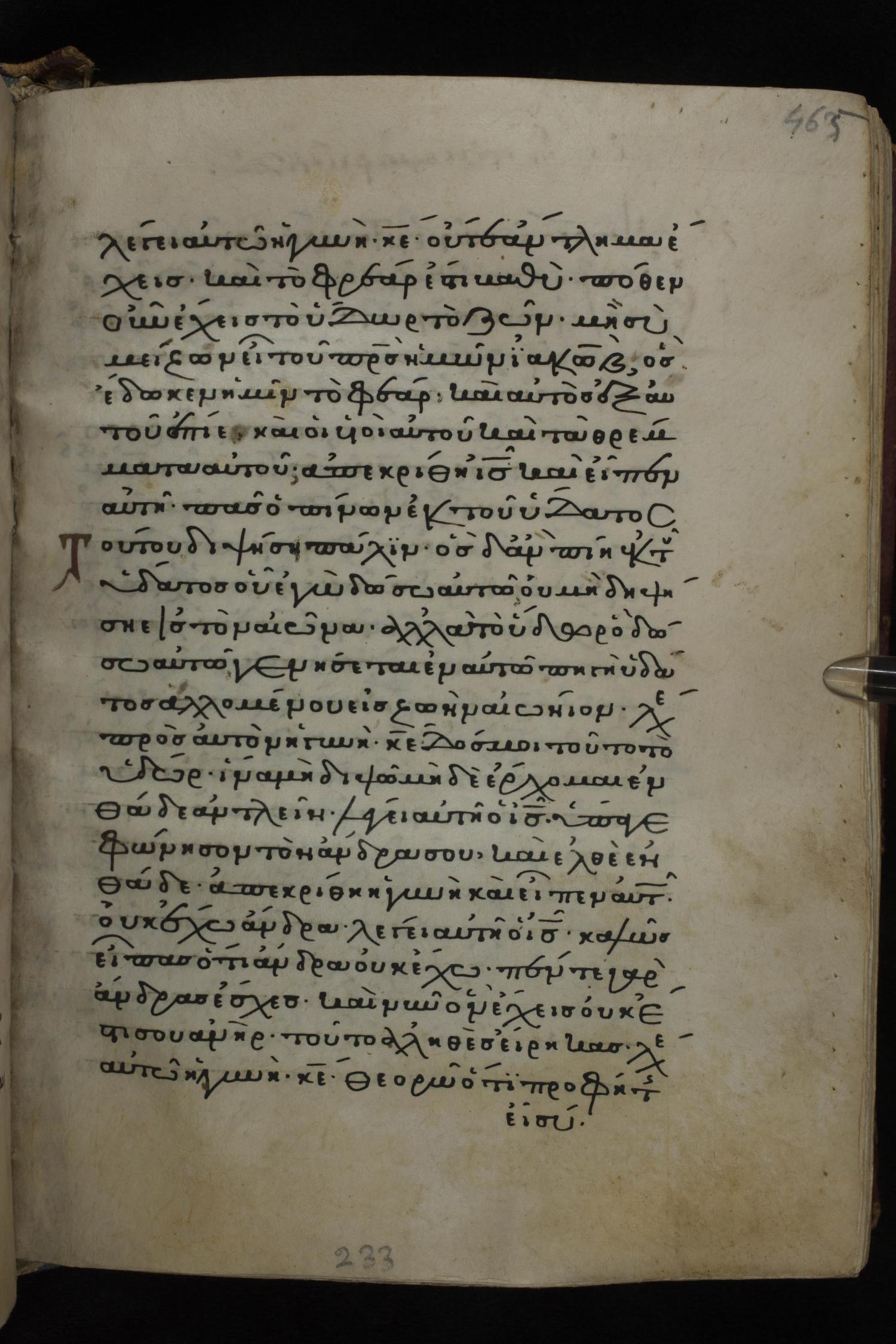 Twelfth century minuscule of the Gospels on parchment; 285 leaves, 1 column, 21-23 lines per column. Images were taken at the National Library of Greece in Athens.