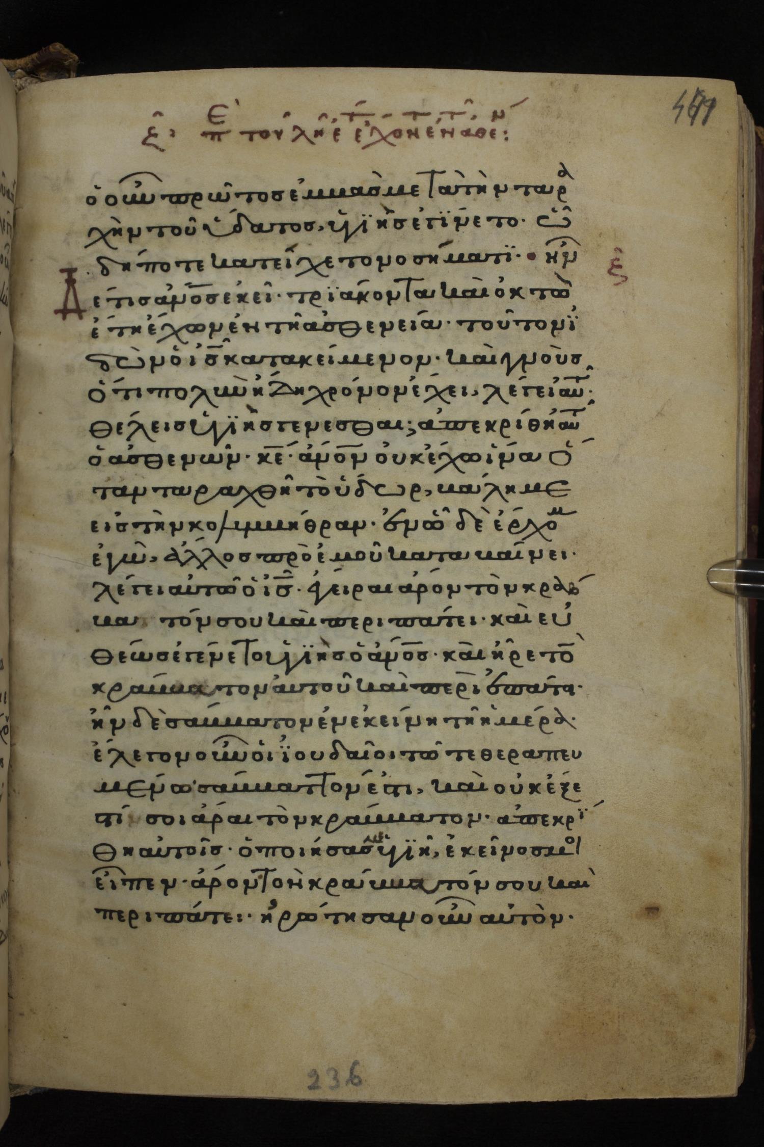 Twelfth century minuscule of the Gospels on parchment; 285 leaves, 1 column, 21-23 lines per column. Images were taken at the National Library of Greece in Athens.
