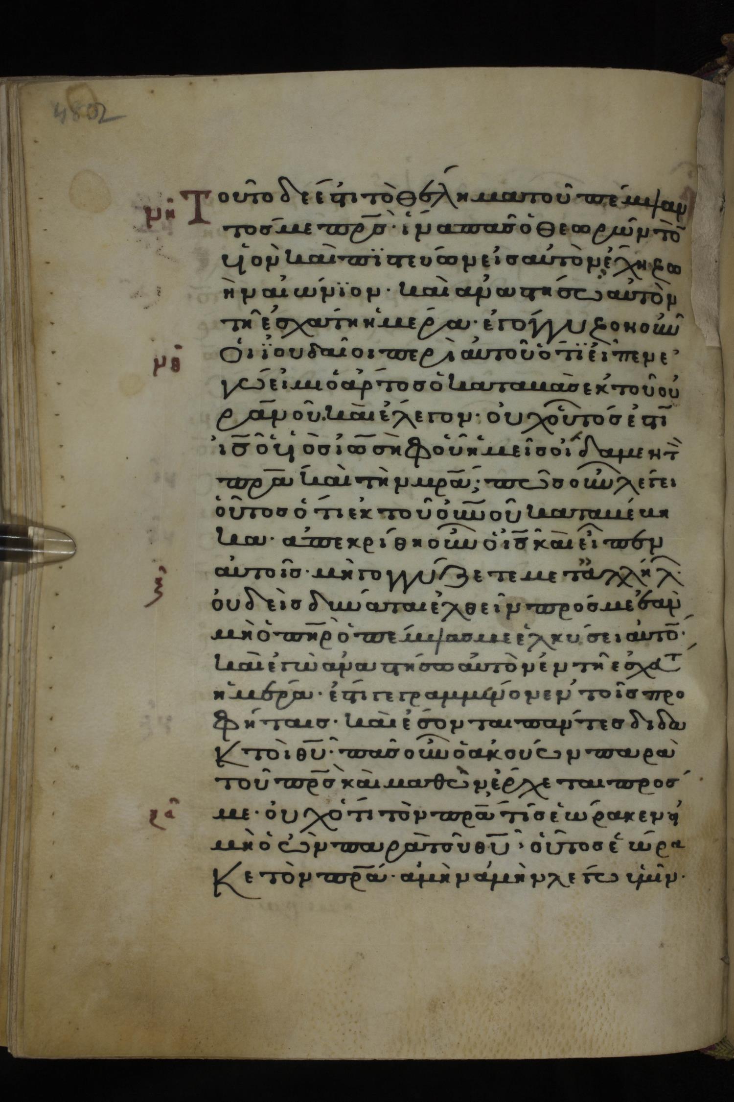 Twelfth century minuscule of the Gospels on parchment; 285 leaves, 1 column, 21-23 lines per column. Images were taken at the National Library of Greece in Athens.