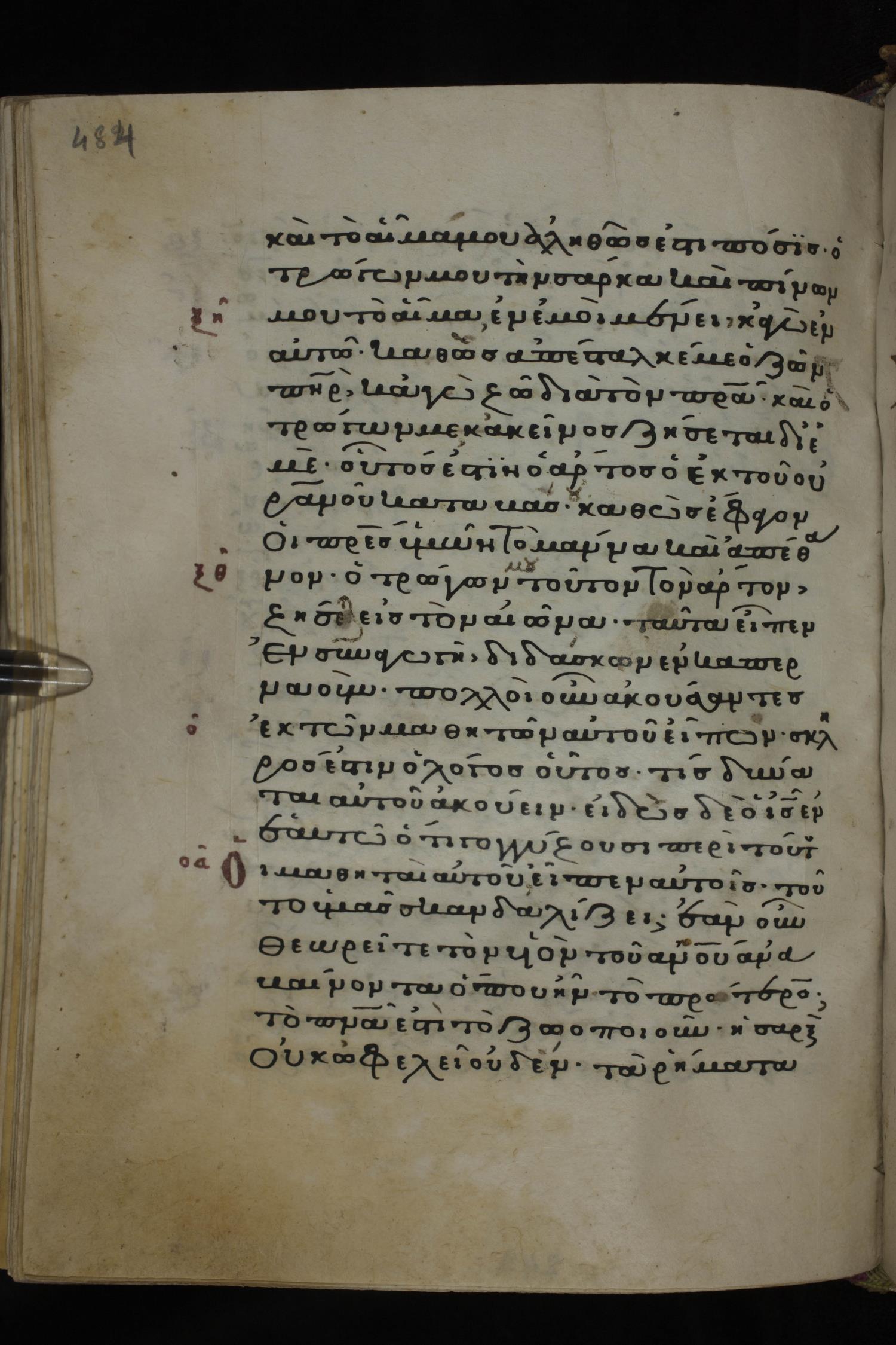 Twelfth century minuscule of the Gospels on parchment; 285 leaves, 1 column, 21-23 lines per column. Images were taken at the National Library of Greece in Athens.