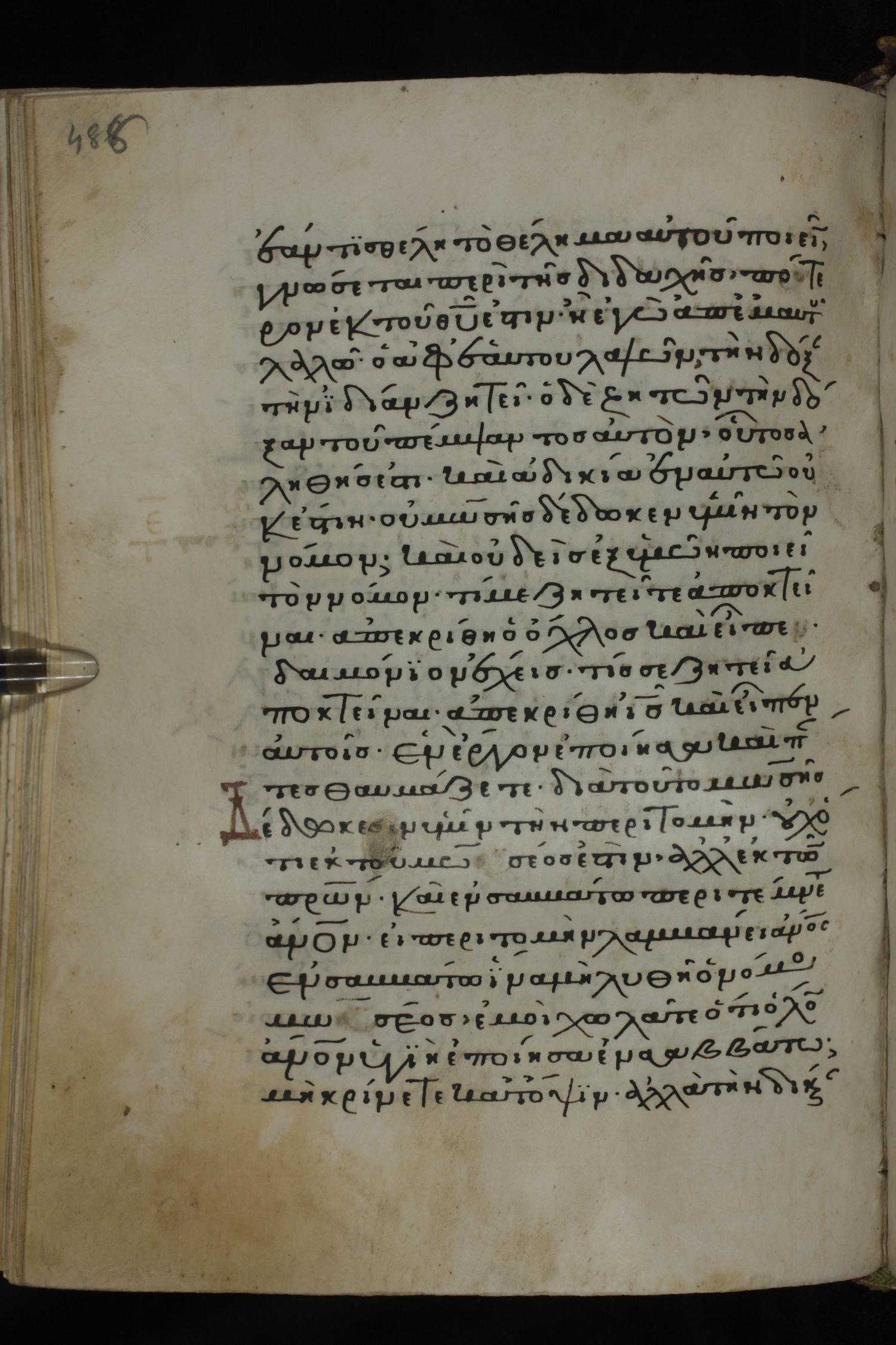 Twelfth century minuscule of the Gospels on parchment; 285 leaves, 1 column, 21-23 lines per column. Images were taken at the National Library of Greece in Athens.