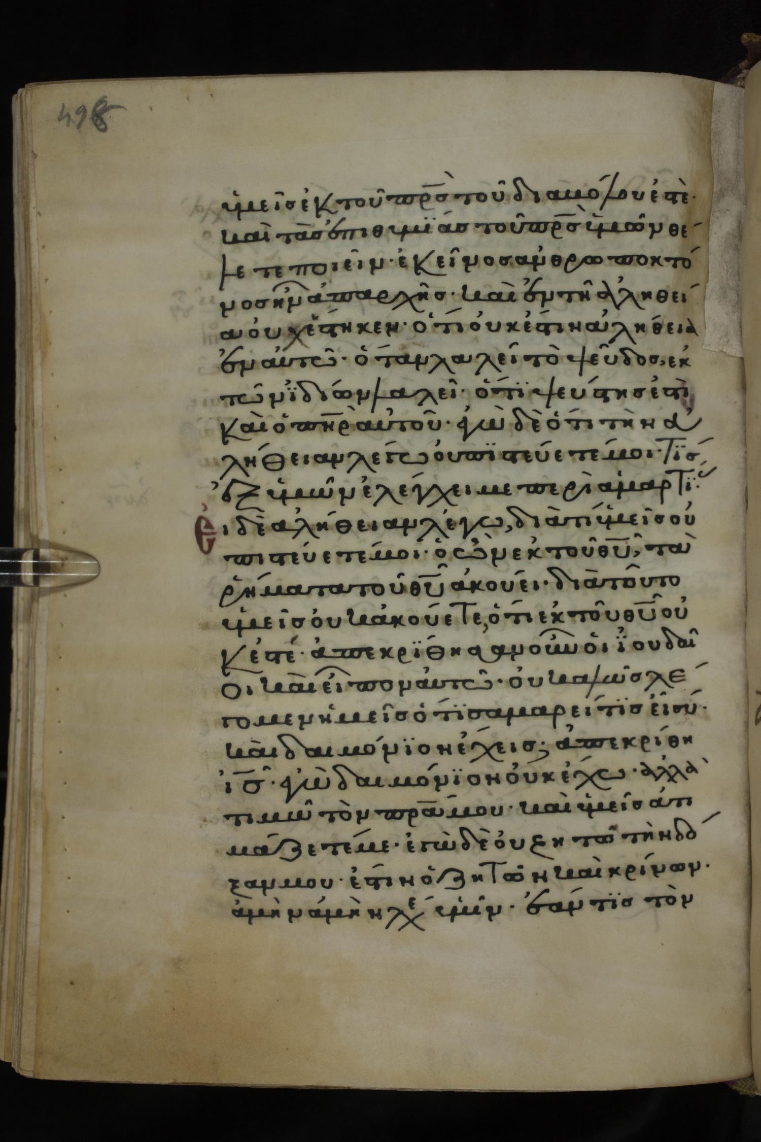 Twelfth century minuscule of the Gospels on parchment; 285 leaves, 1 column, 21-23 lines per column. Images were taken at the National Library of Greece in Athens.