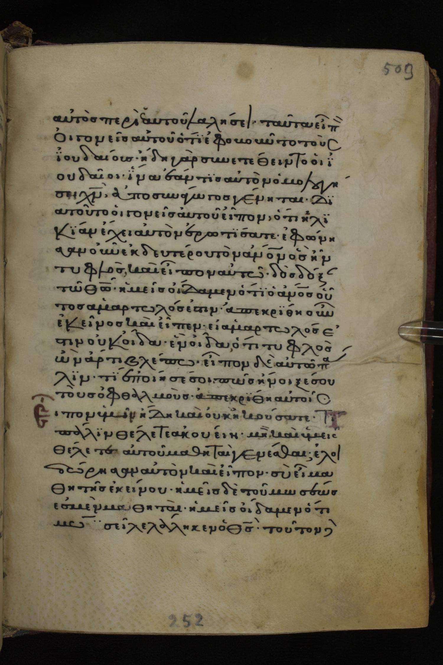 Twelfth century minuscule of the Gospels on parchment; 285 leaves, 1 column, 21-23 lines per column. Images were taken at the National Library of Greece in Athens.