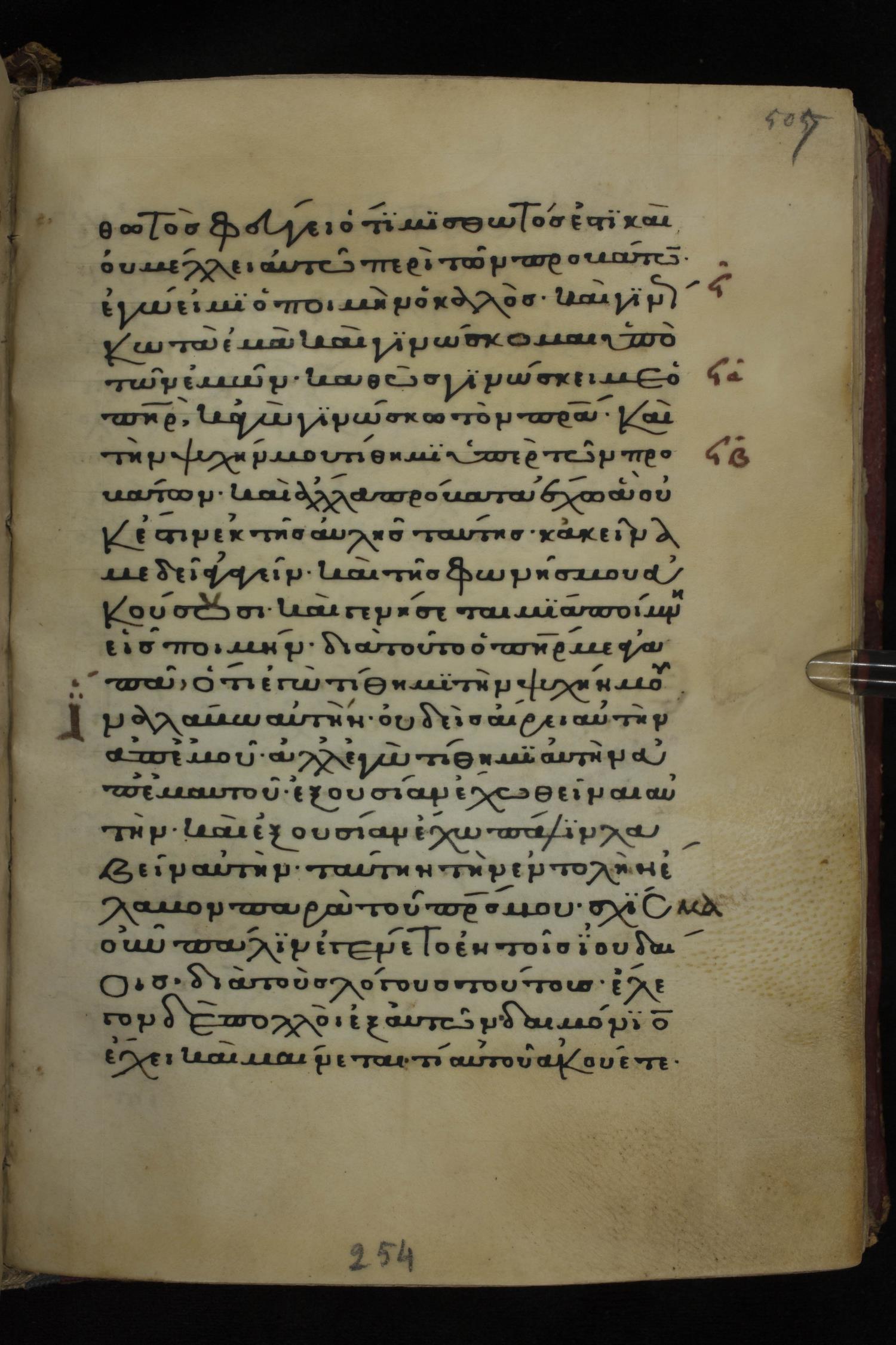 Twelfth century minuscule of the Gospels on parchment; 285 leaves, 1 column, 21-23 lines per column. Images were taken at the National Library of Greece in Athens.