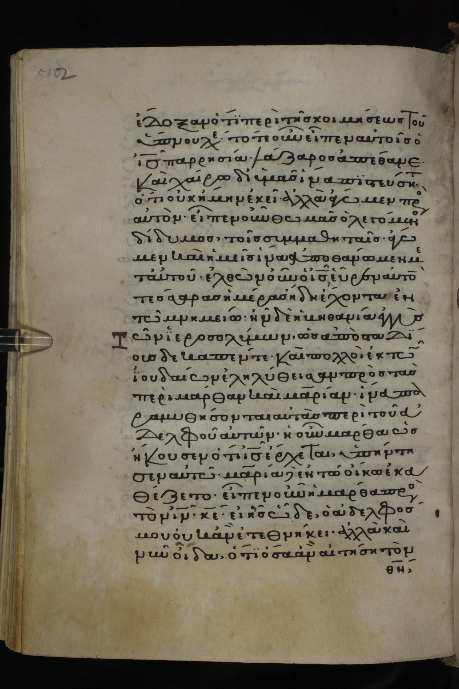 Twelfth century minuscule of the Gospels on parchment; 285 leaves, 1 column, 21-23 lines per column. Images were taken at the National Library of Greece in Athens.