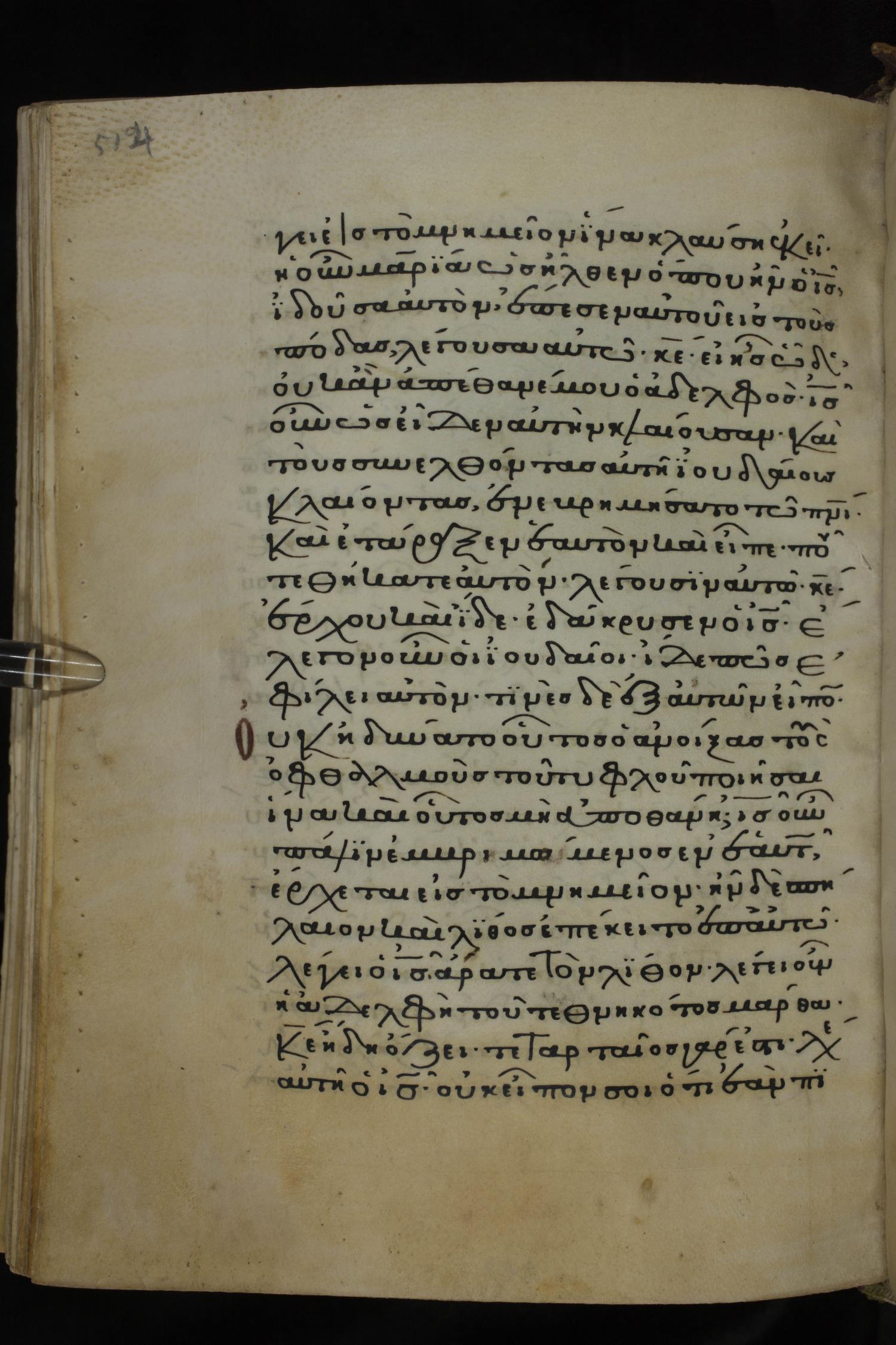 Twelfth century minuscule of the Gospels on parchment; 285 leaves, 1 column, 21-23 lines per column. Images were taken at the National Library of Greece in Athens.