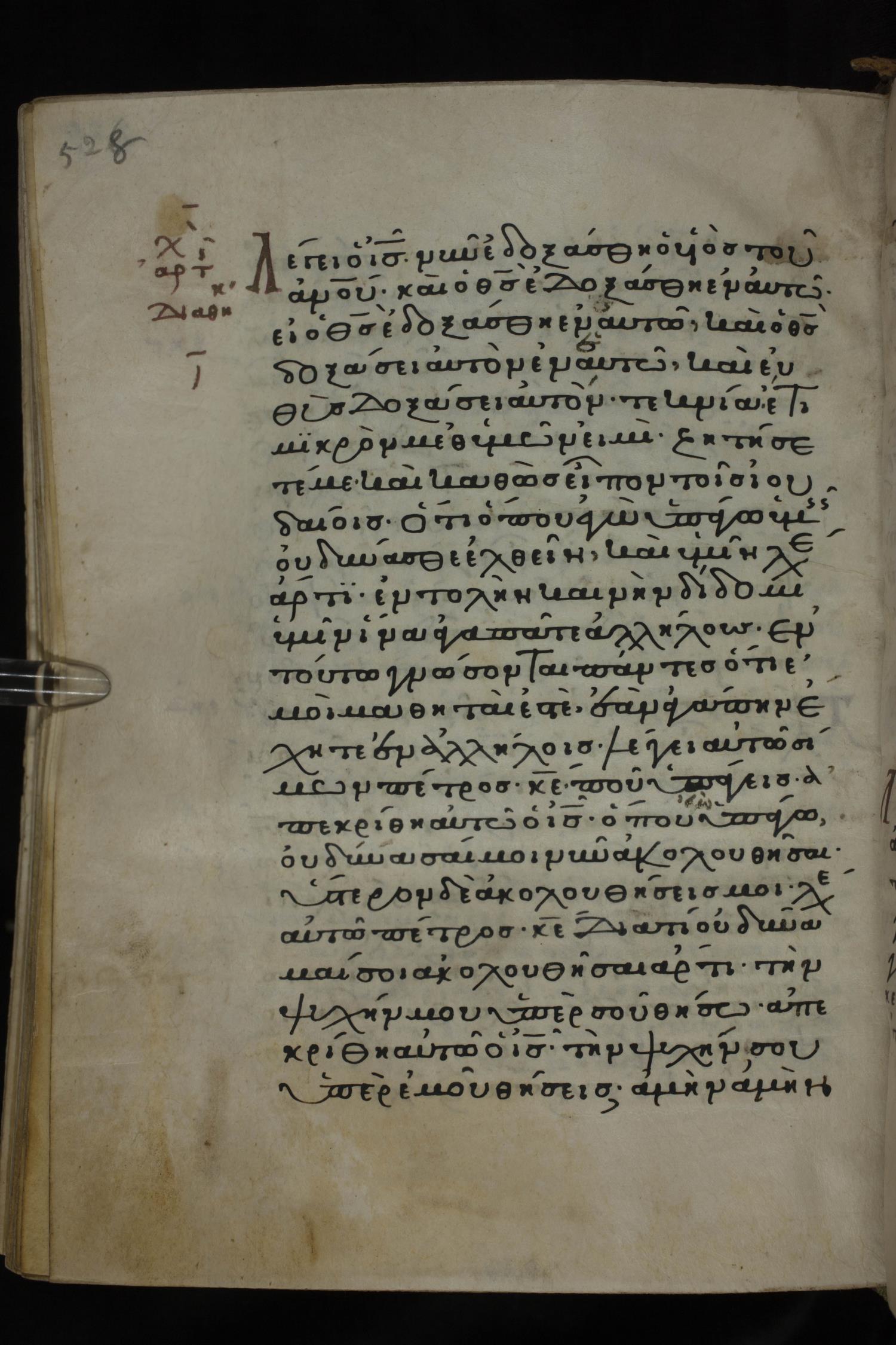 Twelfth century minuscule of the Gospels on parchment; 285 leaves, 1 column, 21-23 lines per column. Images were taken at the National Library of Greece in Athens.