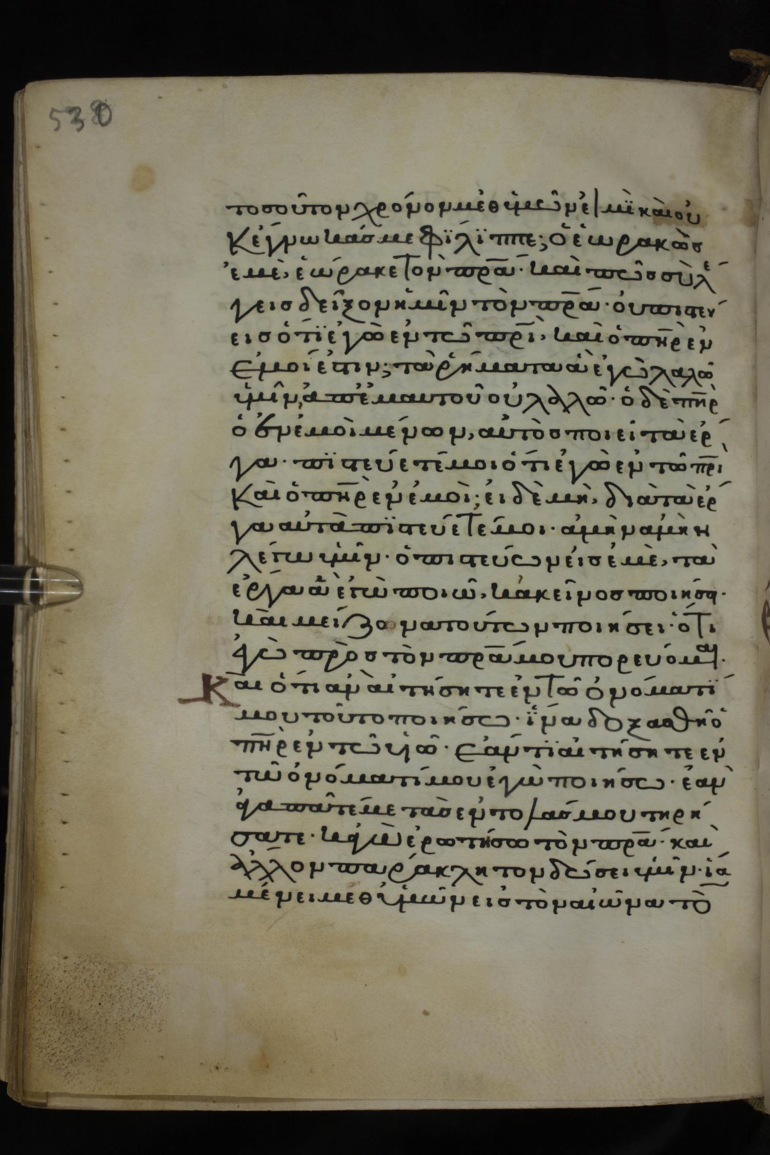 Twelfth century minuscule of the Gospels on parchment; 285 leaves, 1 column, 21-23 lines per column. Images were taken at the National Library of Greece in Athens.