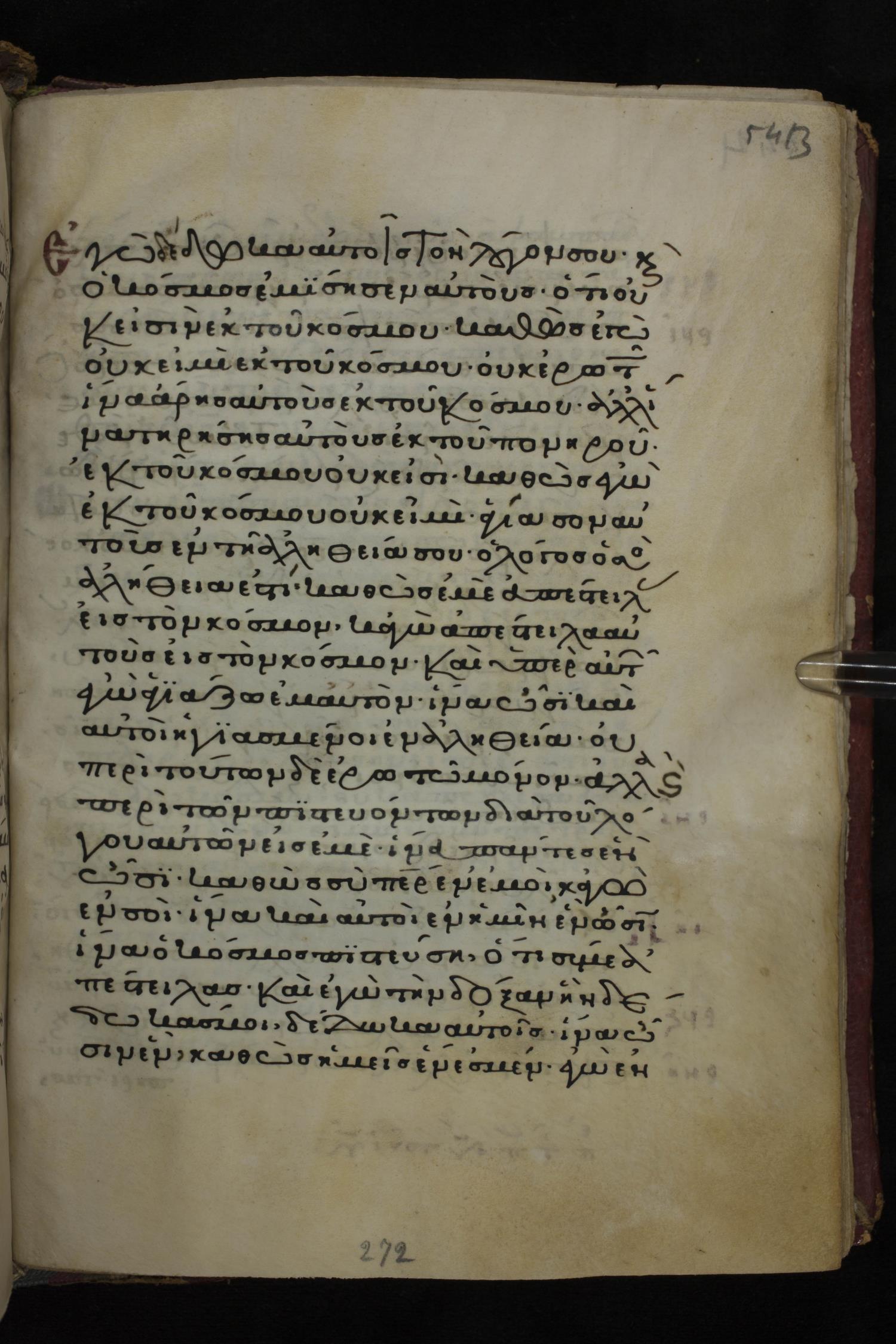 Twelfth century minuscule of the Gospels on parchment; 285 leaves, 1 column, 21-23 lines per column. Images were taken at the National Library of Greece in Athens.