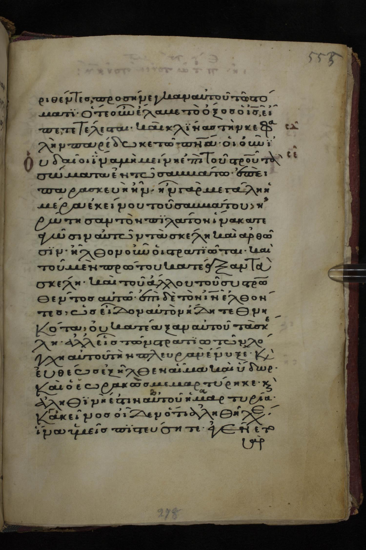 Twelfth century minuscule of the Gospels on parchment; 285 leaves, 1 column, 21-23 lines per column. Images were taken at the National Library of Greece in Athens.