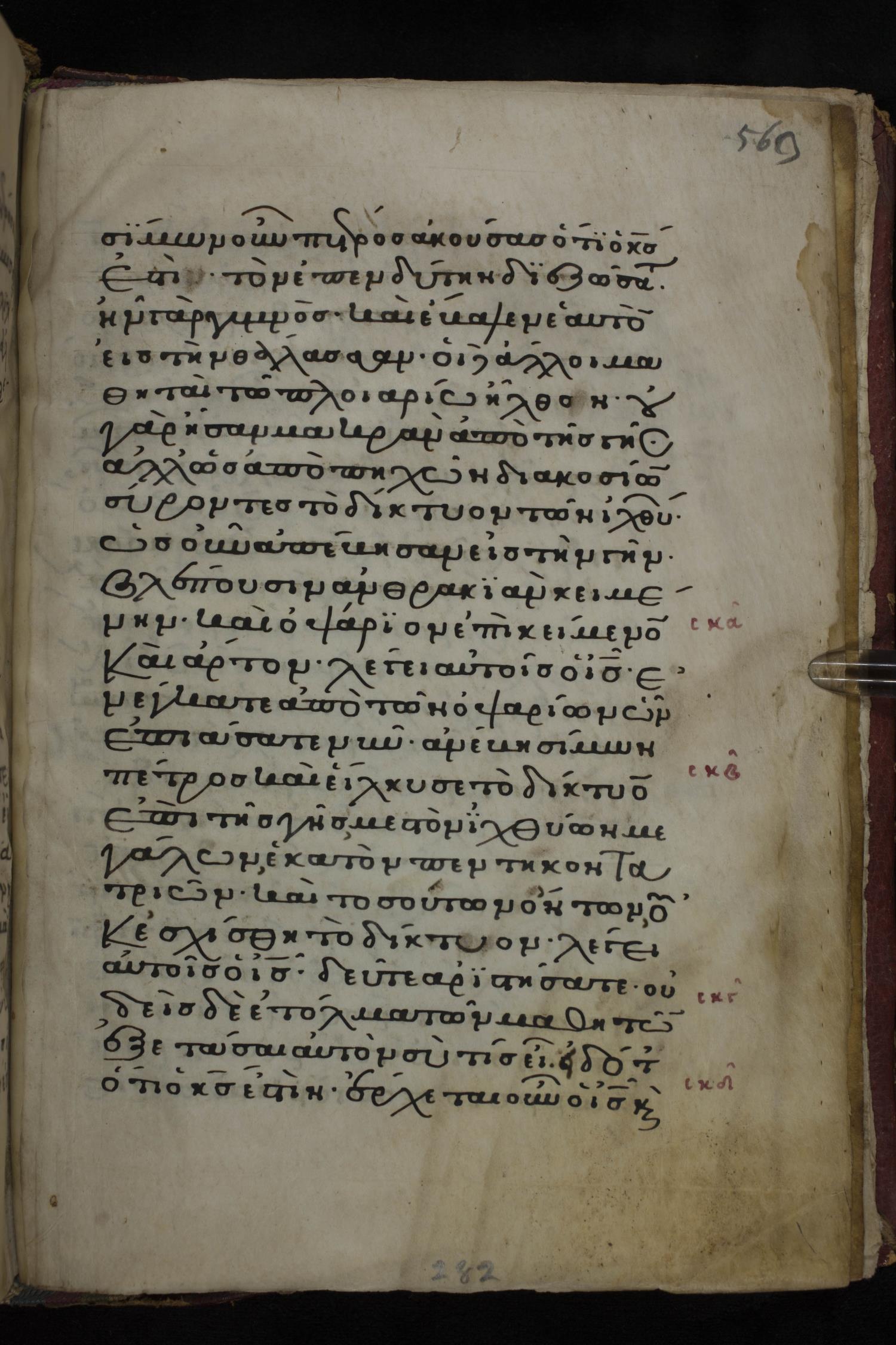 Twelfth century minuscule of the Gospels on parchment; 285 leaves, 1 column, 21-23 lines per column. Images were taken at the National Library of Greece in Athens.
