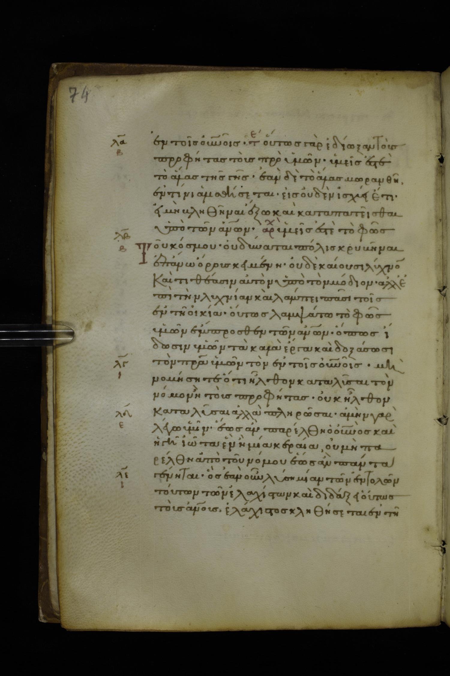 Fourteenth century minuscule of the Gospels on parchment; 282 leaves, 1 column, 22-23 lines per column. Images were taken at the National Library of Greece in Athens.