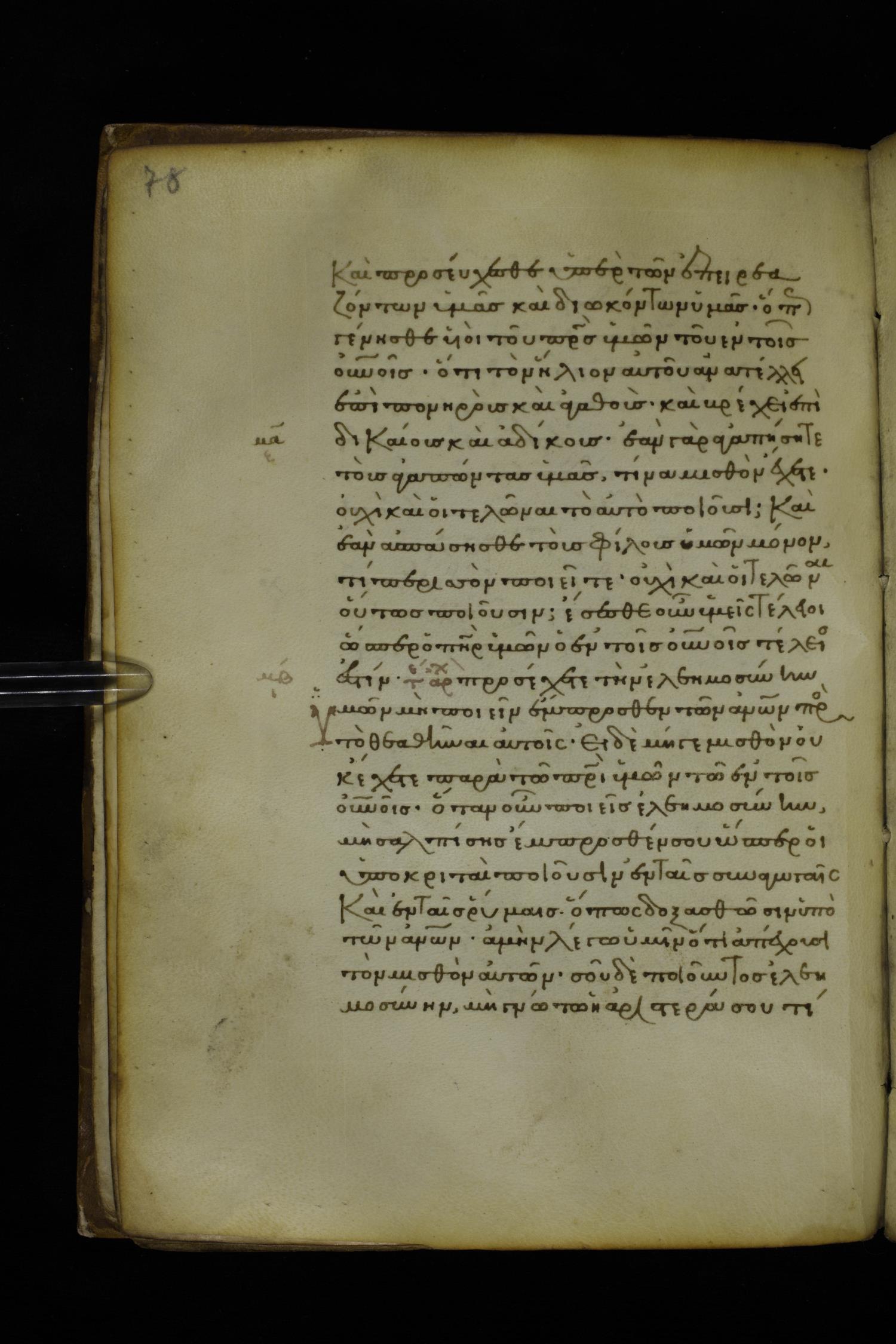 Fourteenth century minuscule of the Gospels on parchment; 282 leaves, 1 column, 22-23 lines per column. Images were taken at the National Library of Greece in Athens.