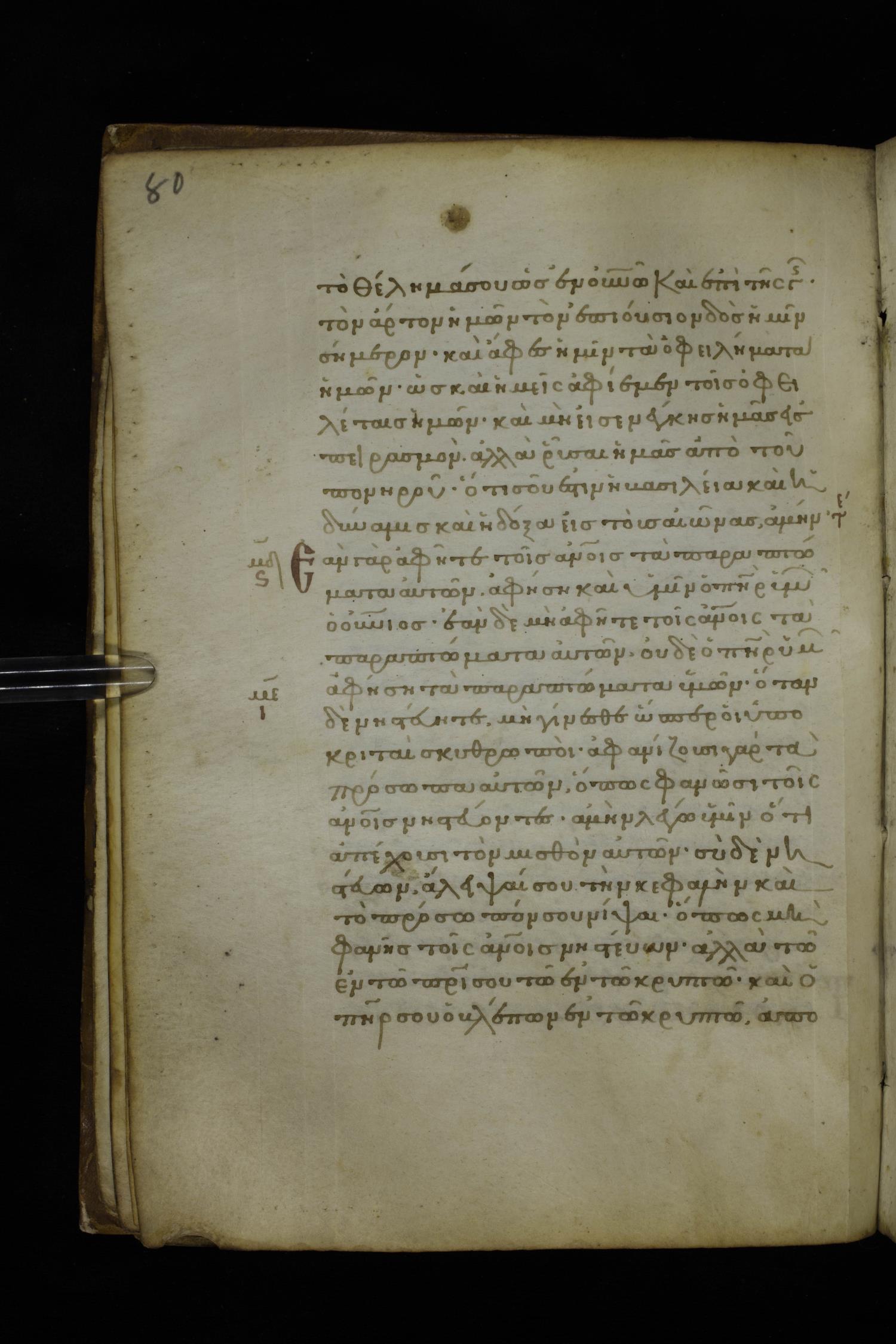 Fourteenth century minuscule of the Gospels on parchment; 282 leaves, 1 column, 22-23 lines per column. Images were taken at the National Library of Greece in Athens.
