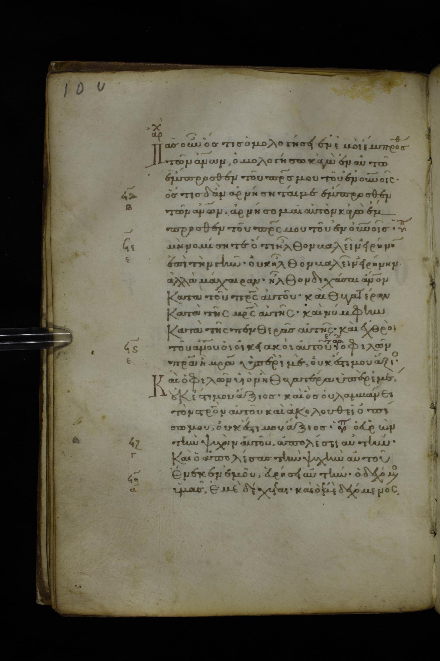 Fourteenth century minuscule of the Gospels on parchment; 282 leaves, 1 column, 22-23 lines per column. Images were taken at the National Library of Greece in Athens.