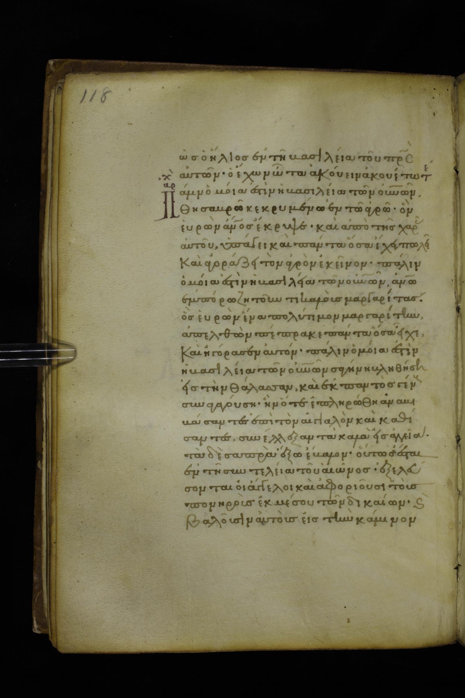 Fourteenth century minuscule of the Gospels on parchment; 282 leaves, 1 column, 22-23 lines per column. Images were taken at the National Library of Greece in Athens.