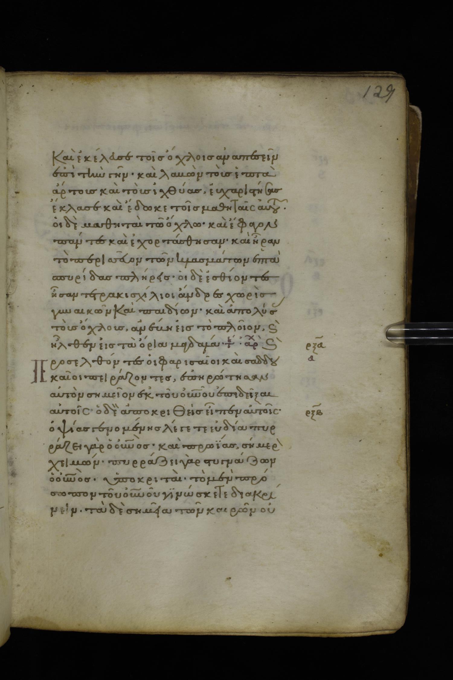 Fourteenth century minuscule of the Gospels on parchment; 282 leaves, 1 column, 22-23 lines per column. Images were taken at the National Library of Greece in Athens.