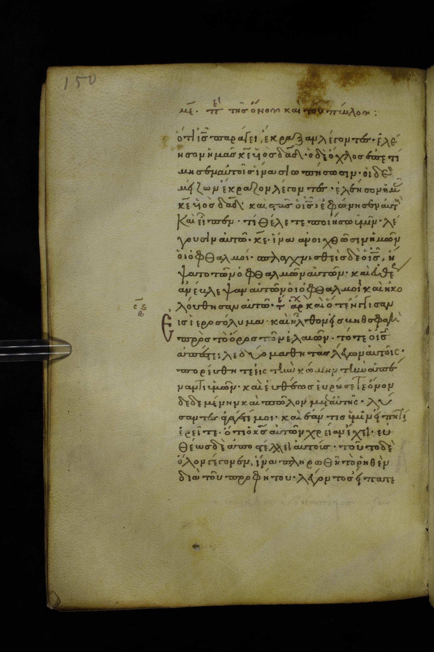 Fourteenth century minuscule of the Gospels on parchment; 282 leaves, 1 column, 22-23 lines per column. Images were taken at the National Library of Greece in Athens.