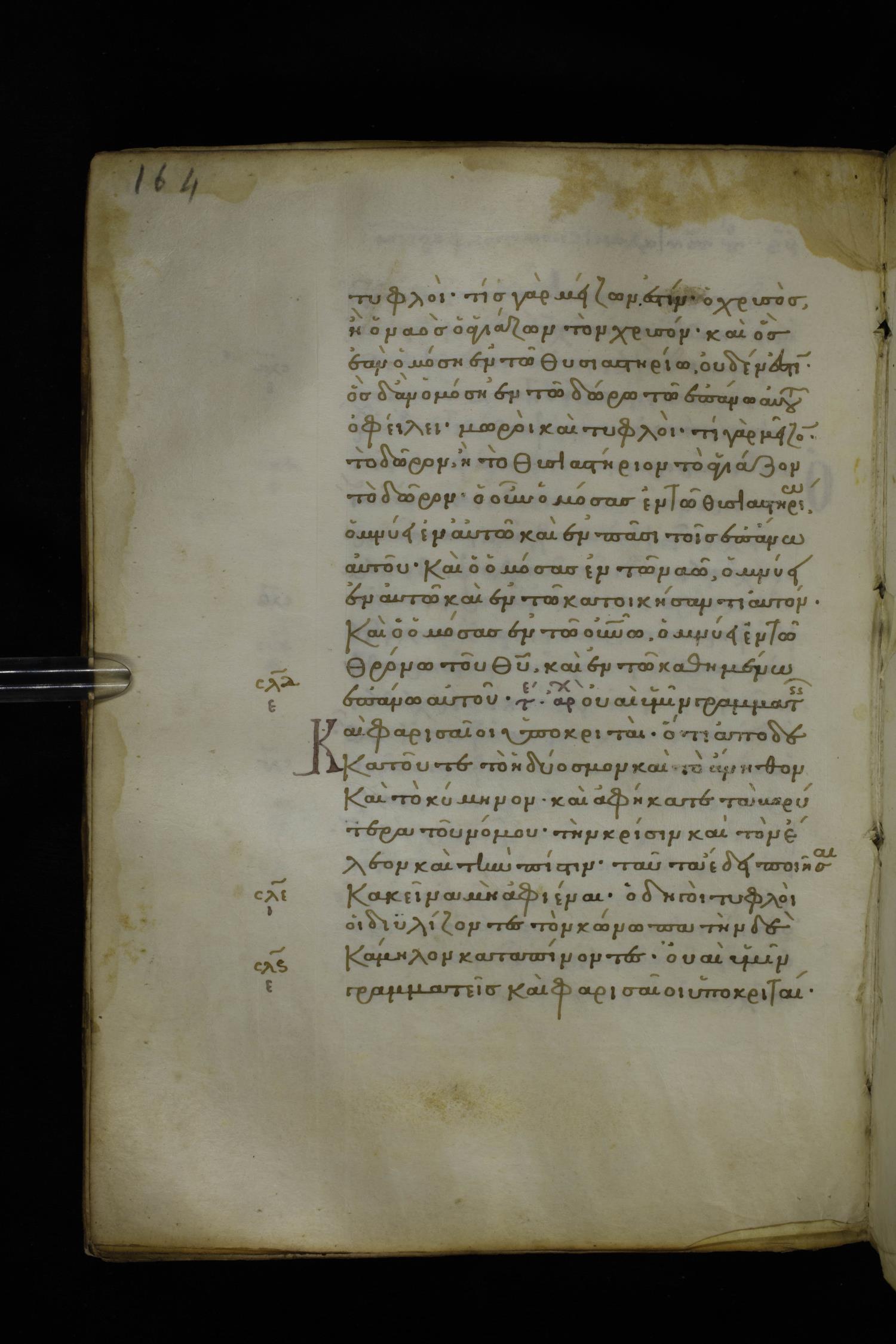 Fourteenth century minuscule of the Gospels on parchment; 282 leaves, 1 column, 22-23 lines per column. Images were taken at the National Library of Greece in Athens.